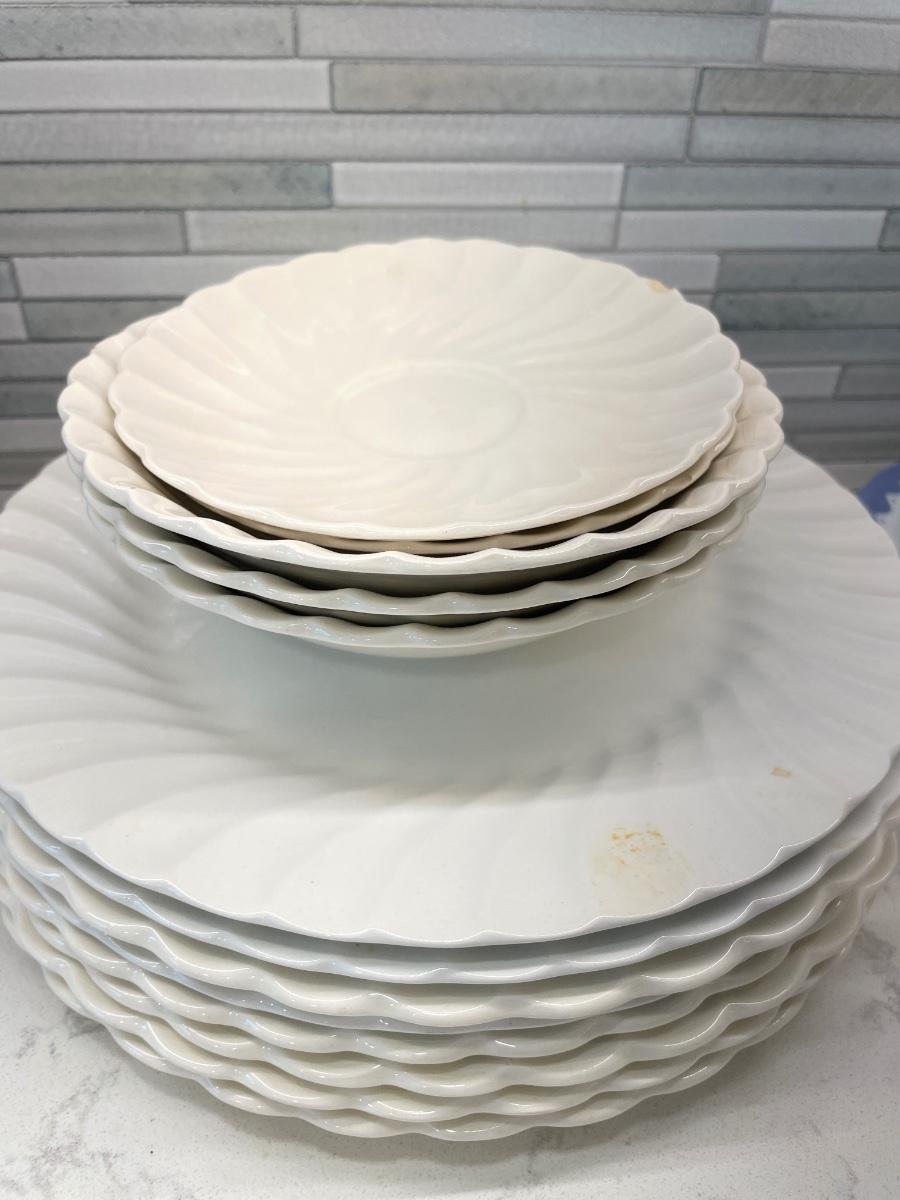8 SG plates, 7 salad plates,7 saucers and 3 bowls