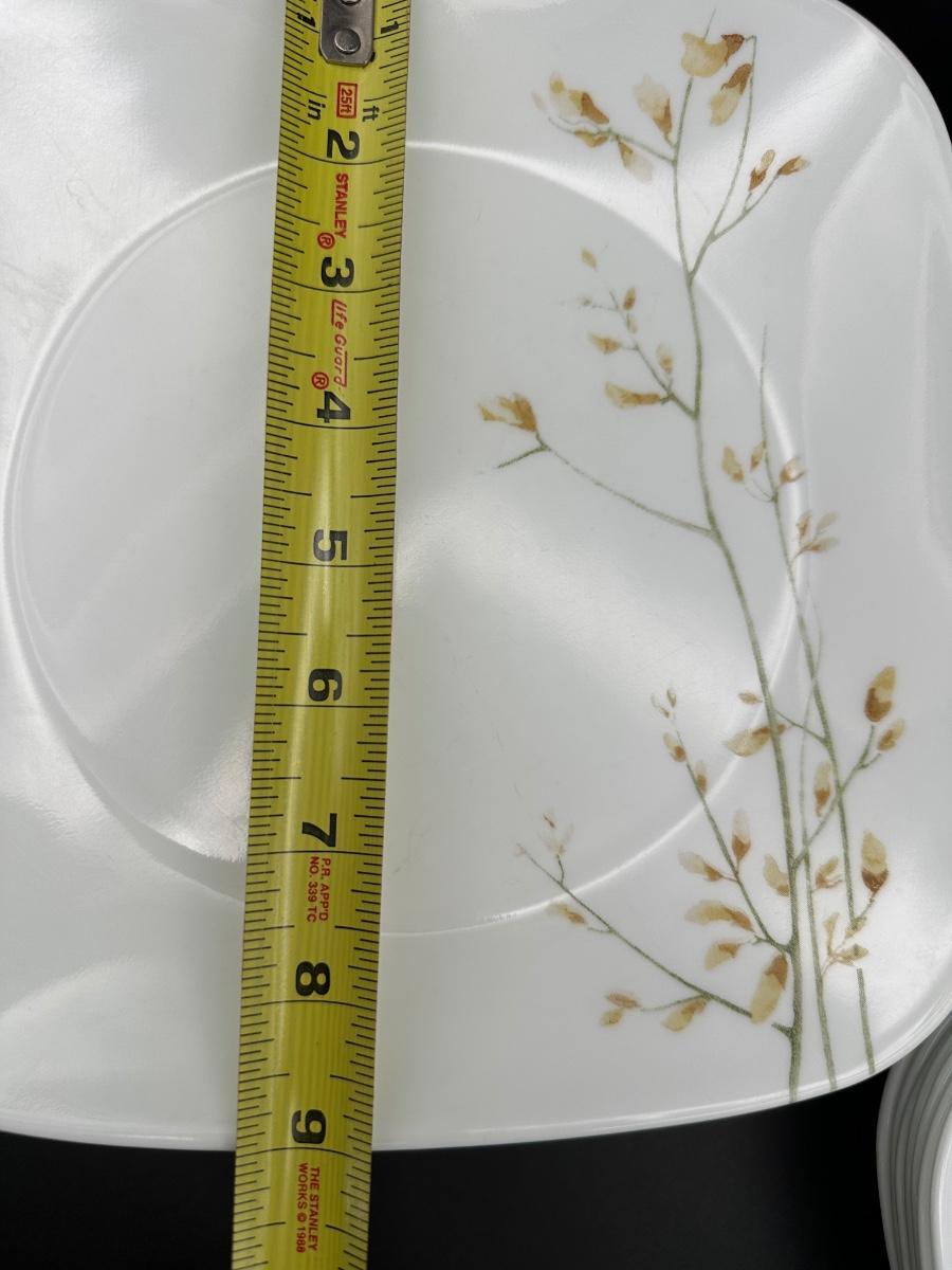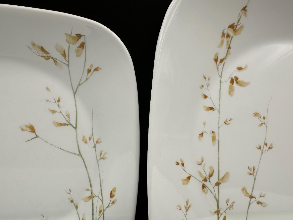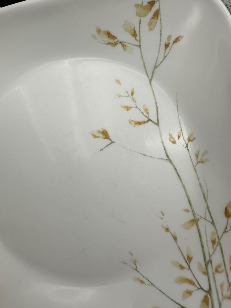 Slight fading of design on smaller plates. Dinner plates are in great shape. Bowls and smaller plates do have slight utensil marks.