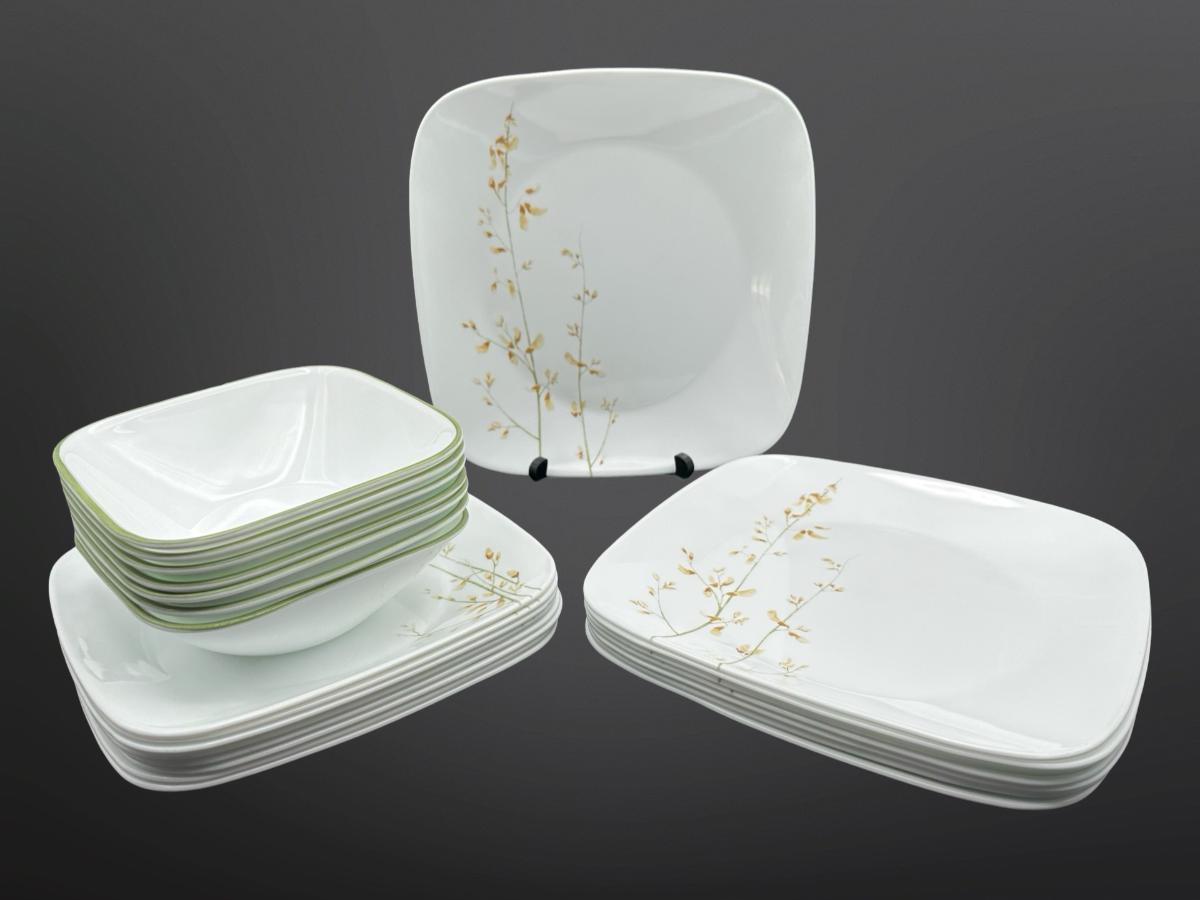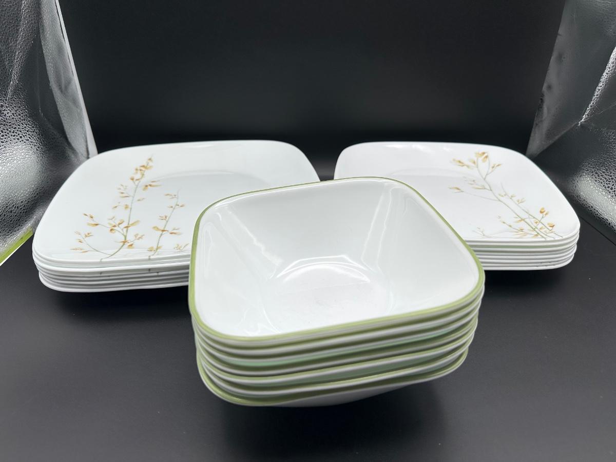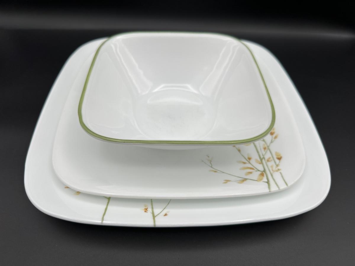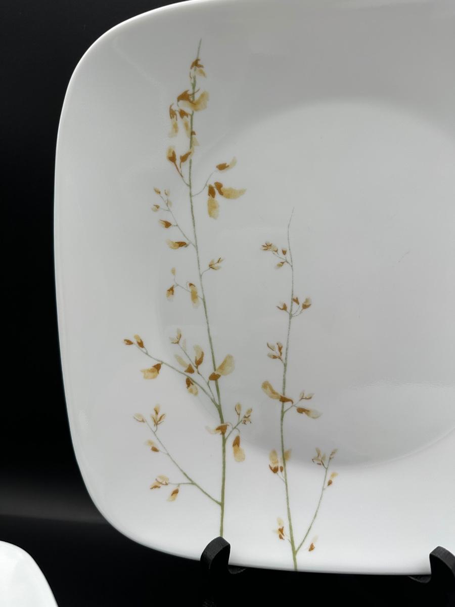 Slight fading of design on smaller plates. Dinner plates are in great shape. Bowls and smaller plates do have slight utensil marks.