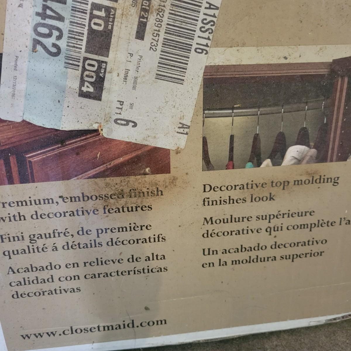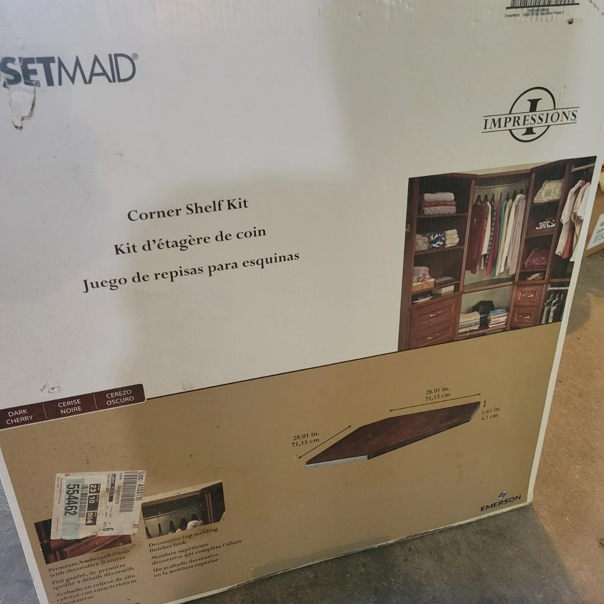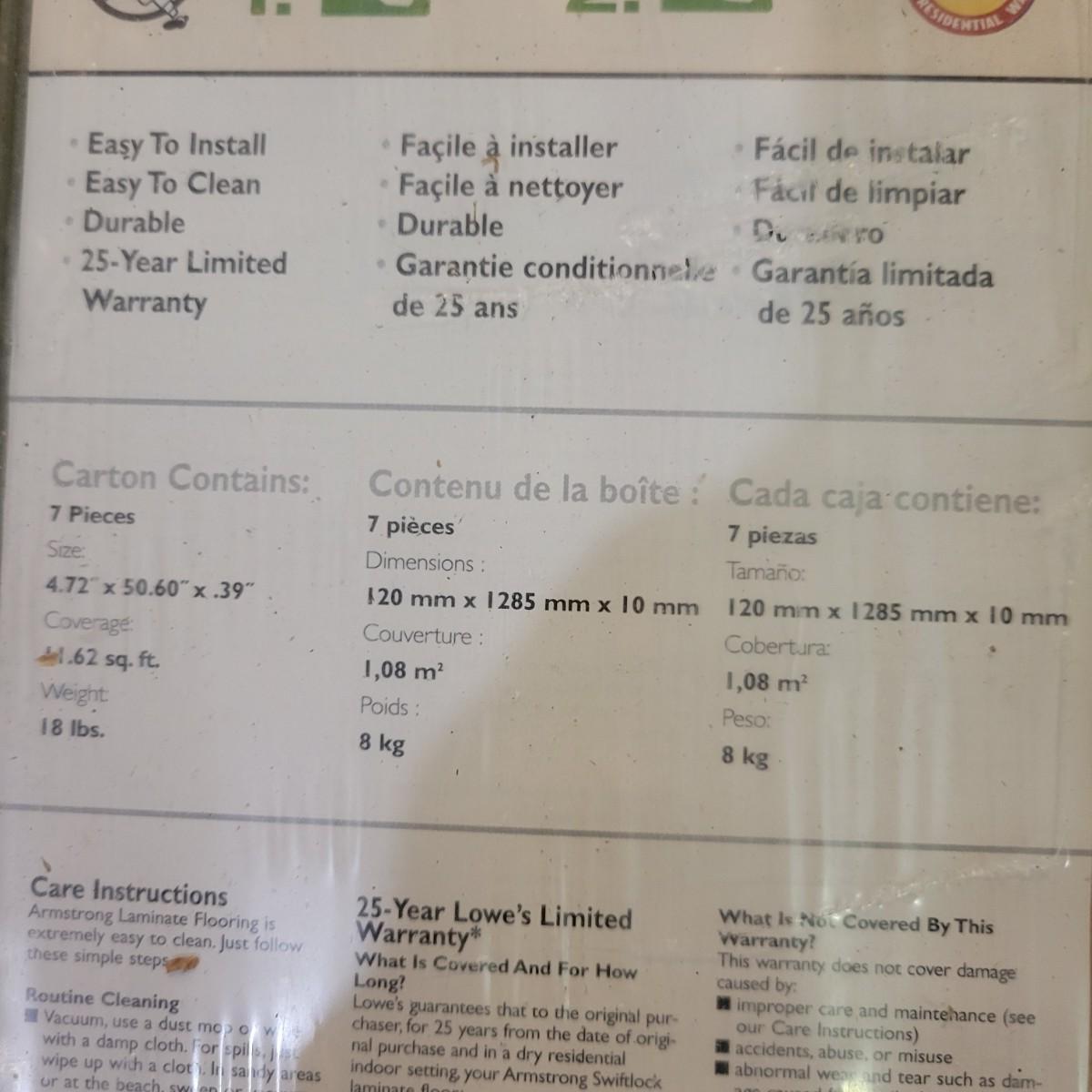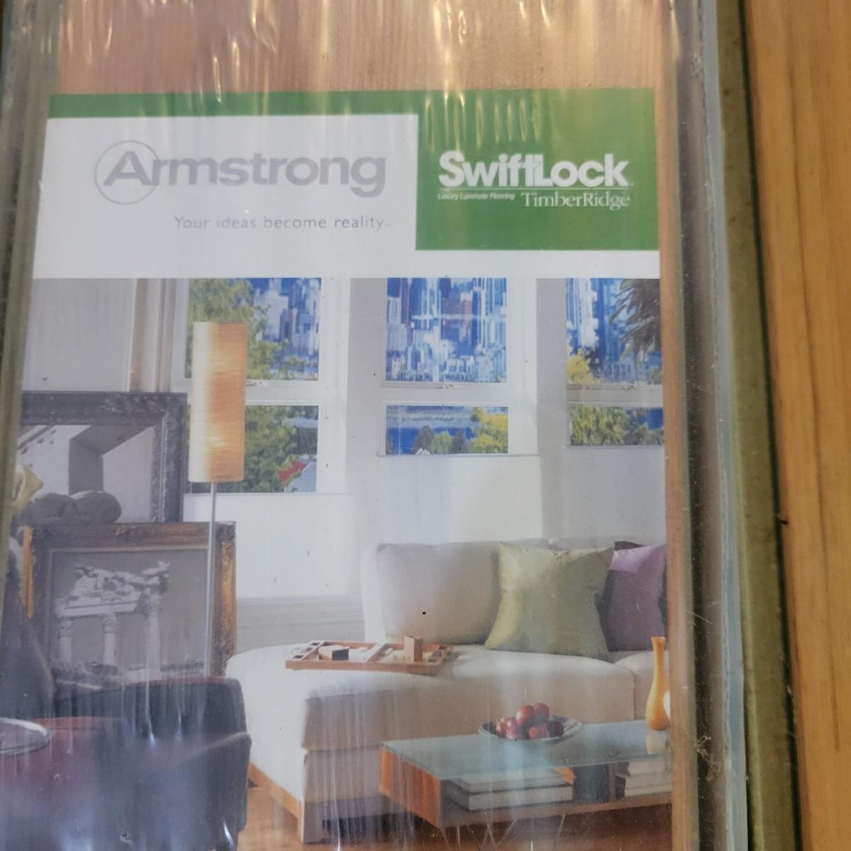 Two boxes of cortec flooring, eleven pieces of Armstrong flooring in good condition. Also includes a ClosetMaid corner shelf kit NIB. The coretec flooring has one unopened box and a box with thirteen pieces. A light pickled stain with wood grain and has cork bottoms. Pieces measure 7.5" x 43". The Armstrong Swiftlock flooring also has one unopened box. Heirloom hickory finish with a slight wood texture. Each piece measures approximately 5" x 51". Also includes the ClosetMaid corner shelf kit with a mahogany coloring and is in unopened packaging. Local pickup only