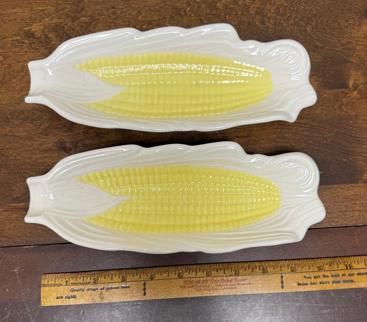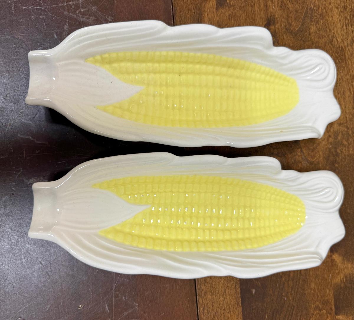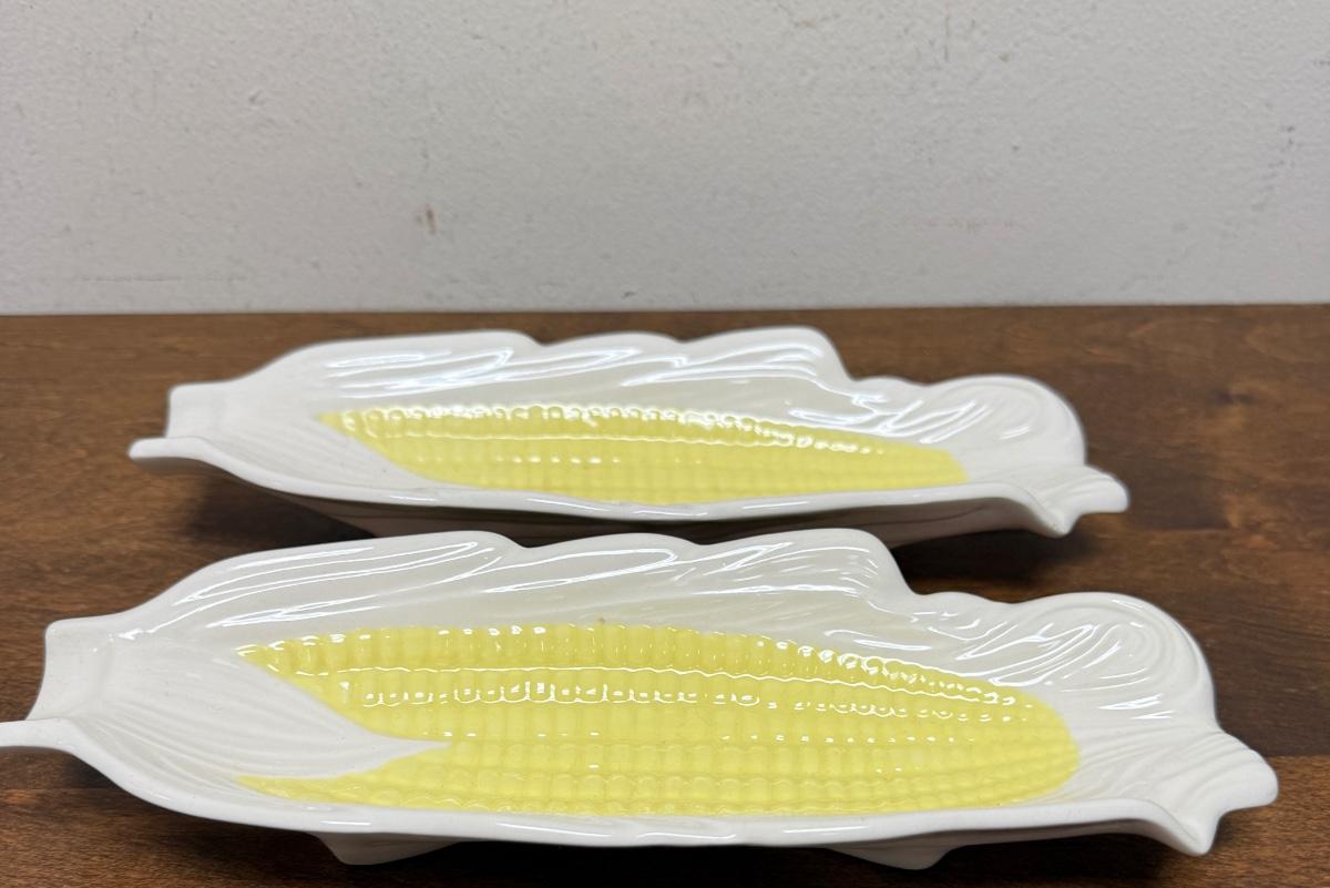 Corn Cob Holder Plates shaped like Ears of Corn yellow and white