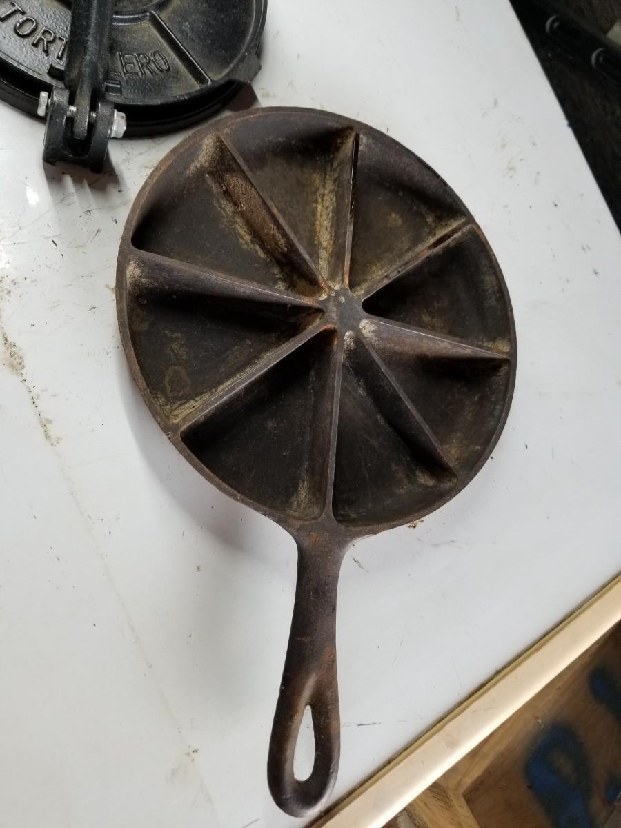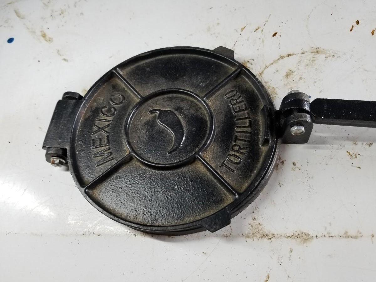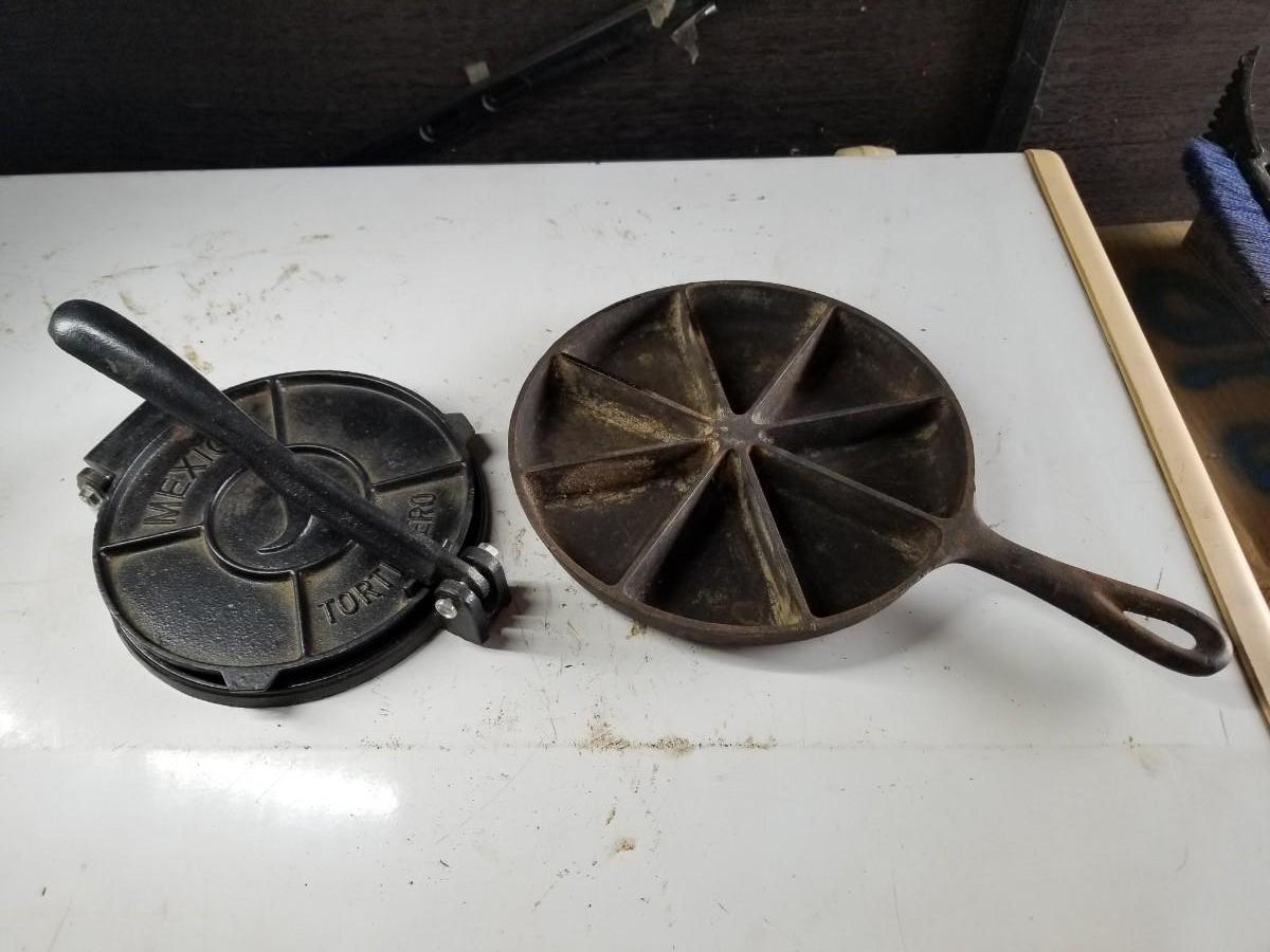 Cast iron cornbread skillet and tortilla press