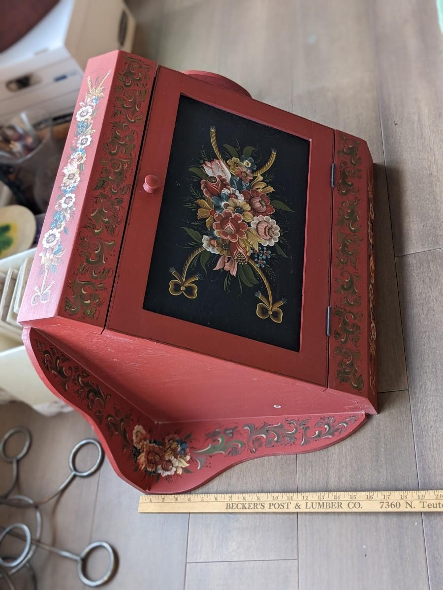 Corner Cabinet Decorative Rosemaling Small Vintage Hand Painted