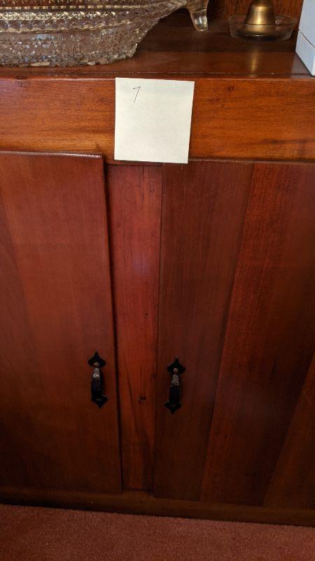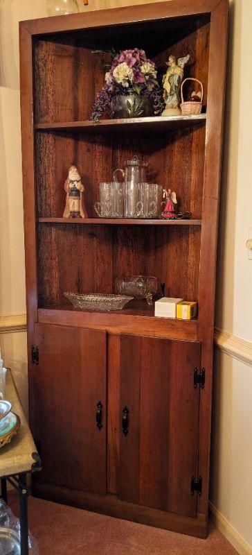 Corner cabinet with lower doors. Cyprus back? 80" h x 32" w (#7)