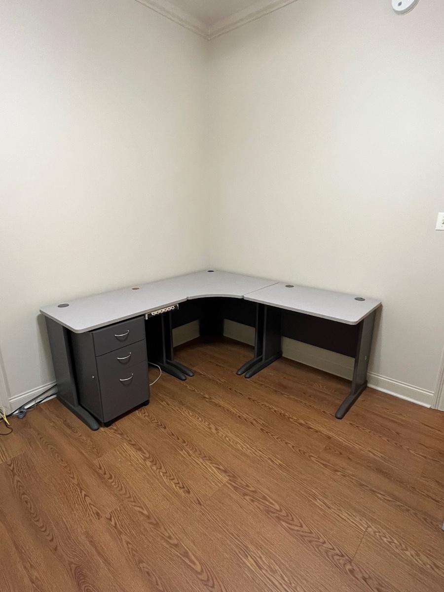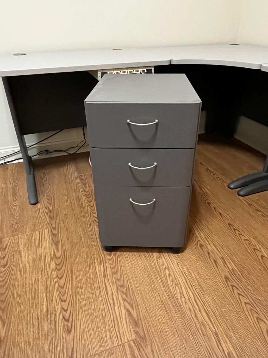 SAUDER ~ 3-Piece Sectional Metal & Formica Corner Computer Desk With Filing Cabinet