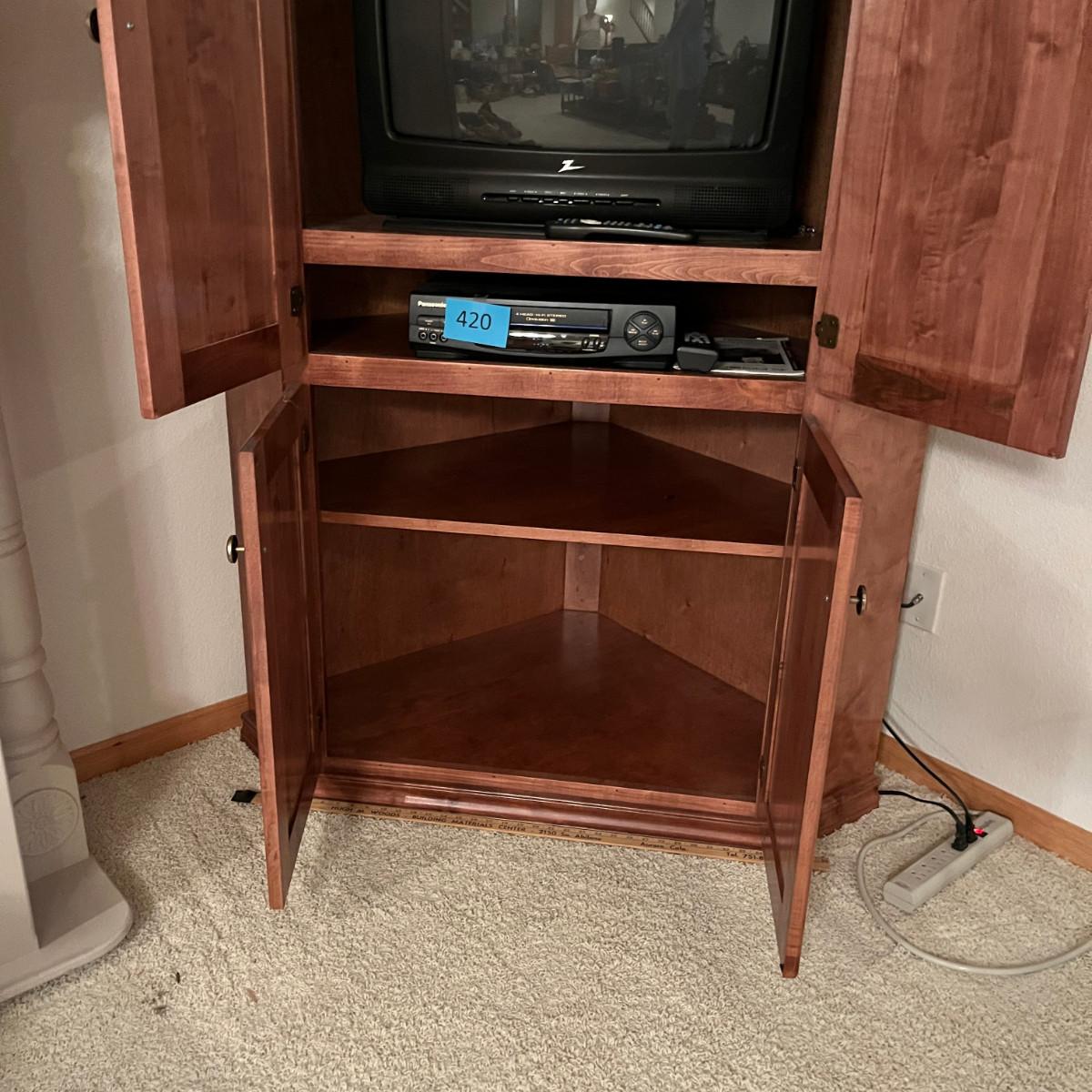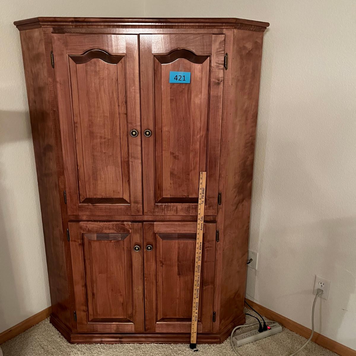 Very nice corner cabinet. Can be used for an entertainment center or just storage!