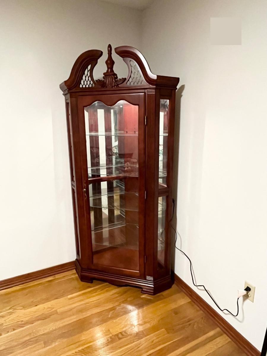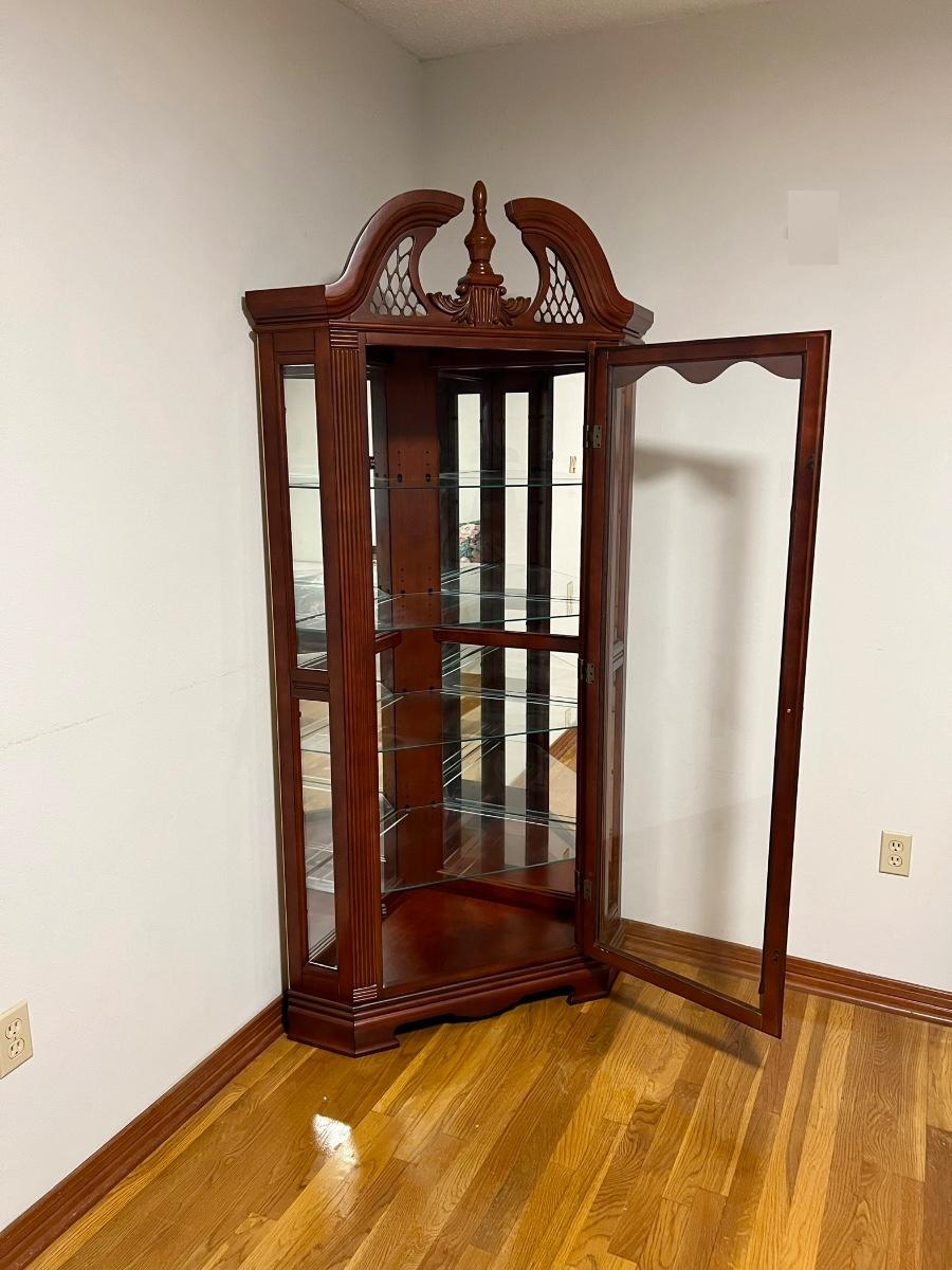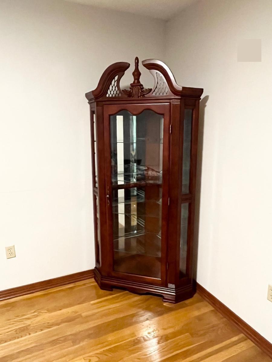 Solid Wood Lighted Mirrored Corner Curio Cabinet