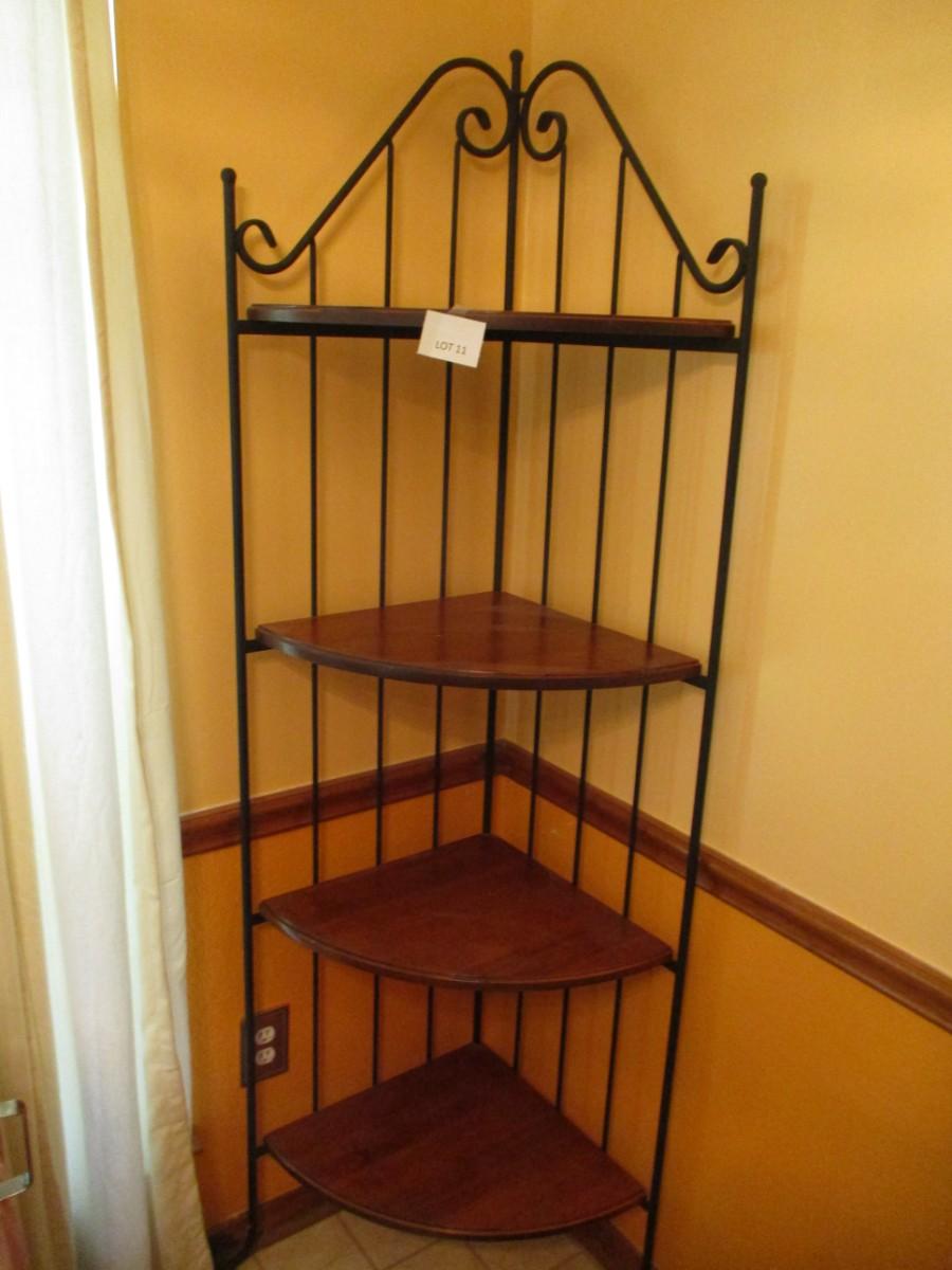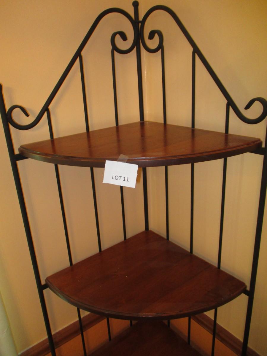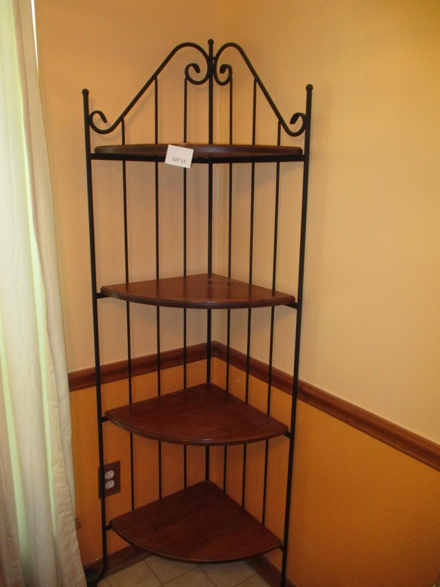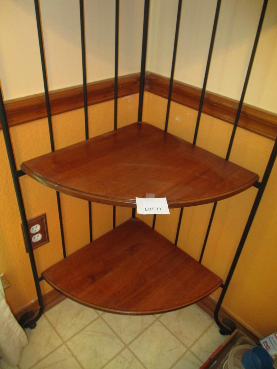 Wrought iron w/wooden shelves. Approx 72"H. Great condtion