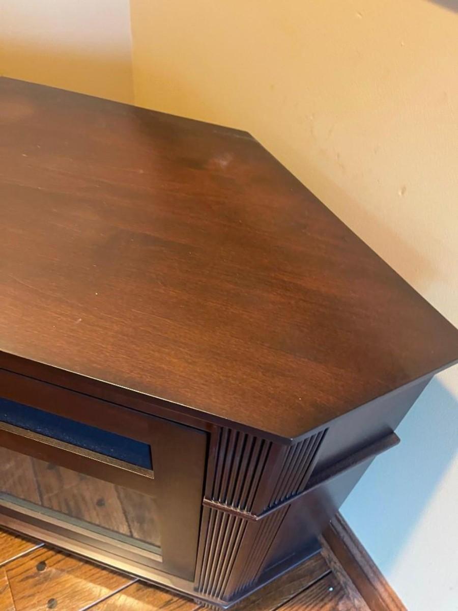 Corner TV Stand.  Very good condition with some minor scratches here and there.