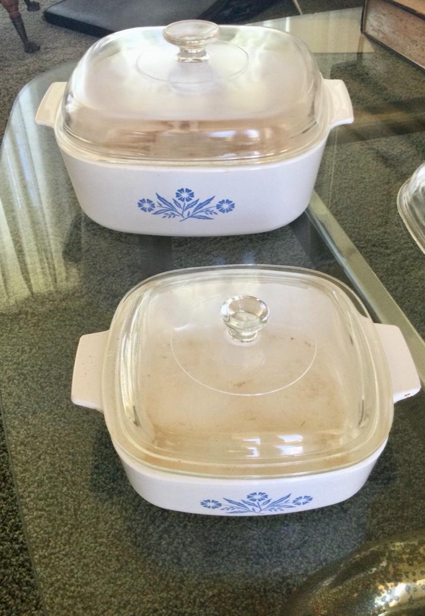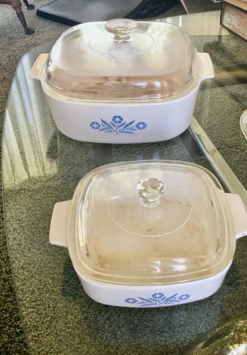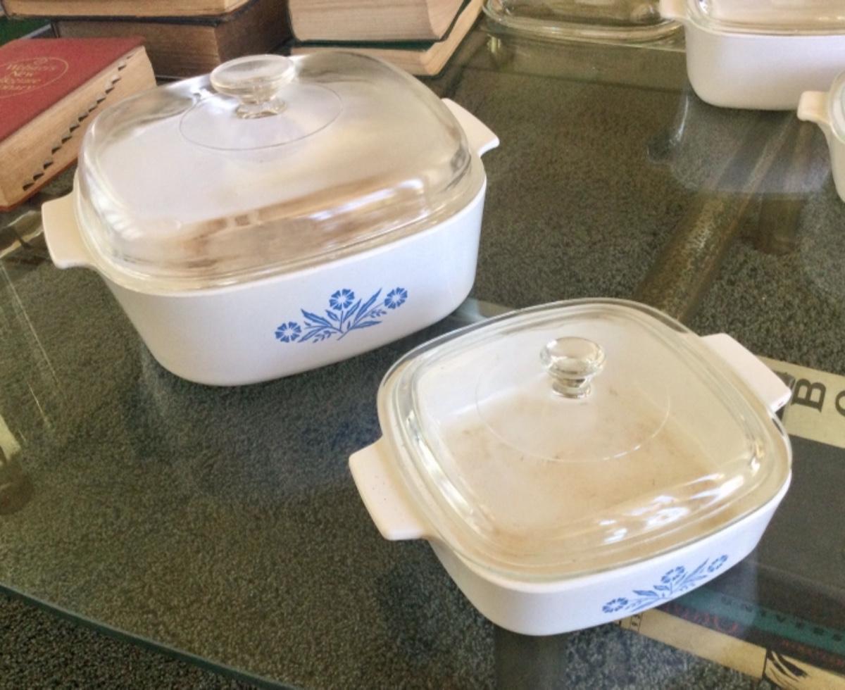 Cornflower blue Corning ware casserole dishes