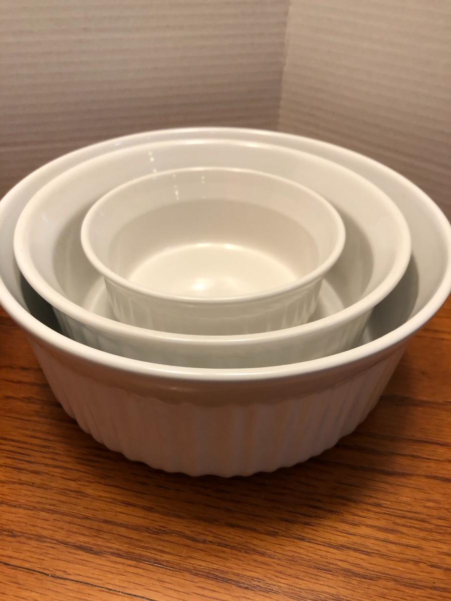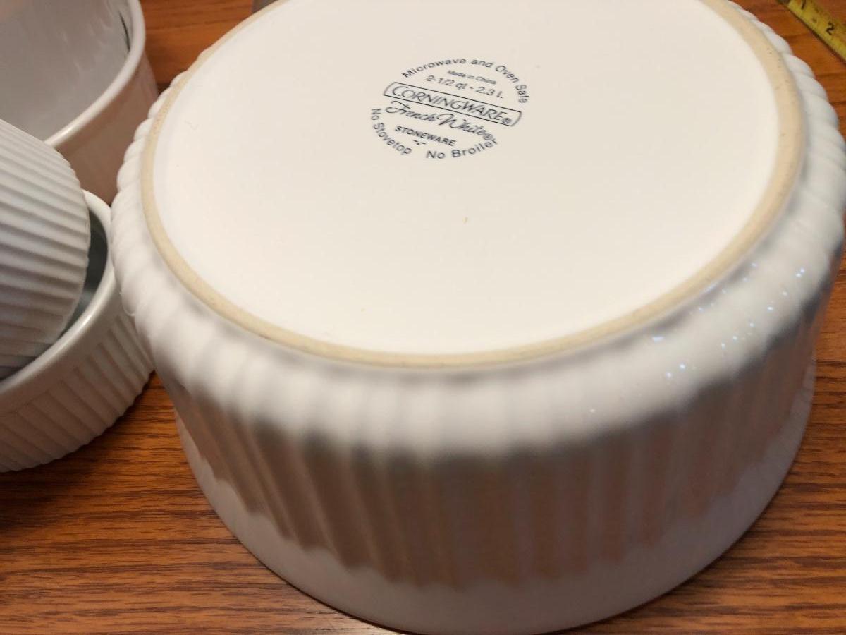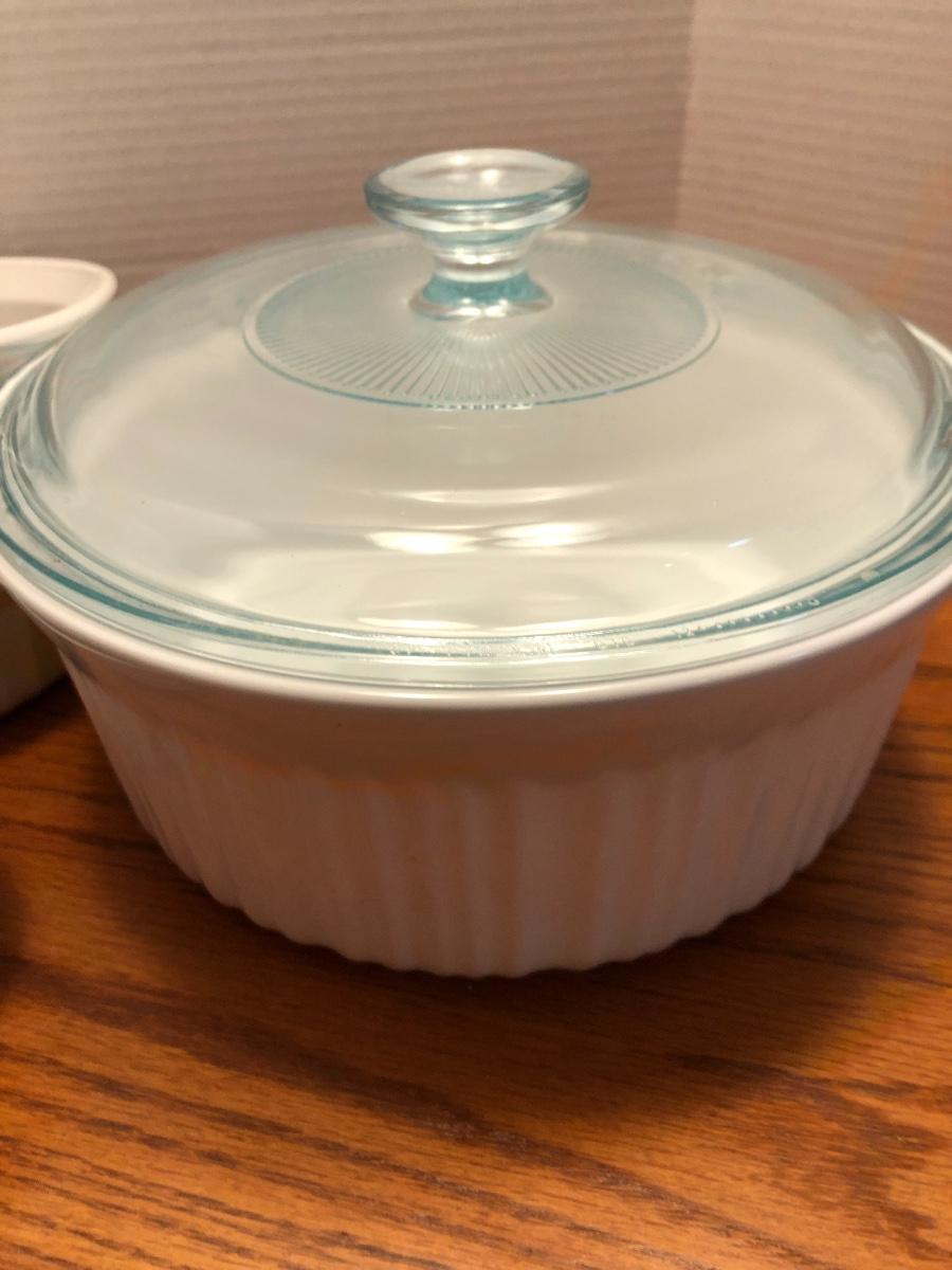 We have added many quality photos for each lot showing content, condition, & dimensions. Feel free to e-mail or text any questions. All items are sold as is, as found in the estate. Please see all photos for content, measurements and condition. Added one more bowl after photos. Glass lid appears to be Pyrex.