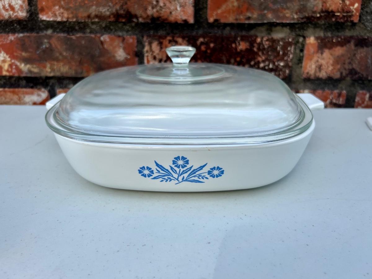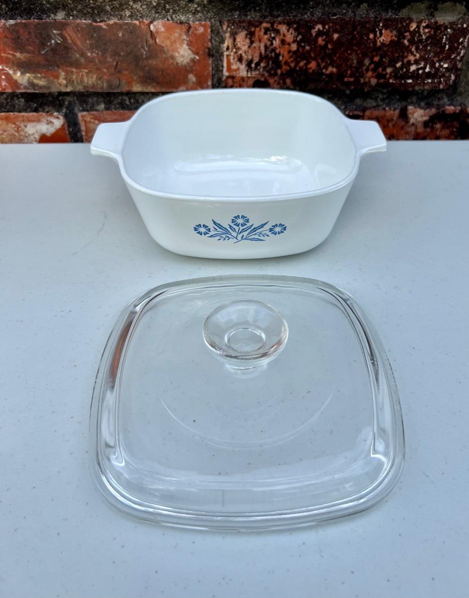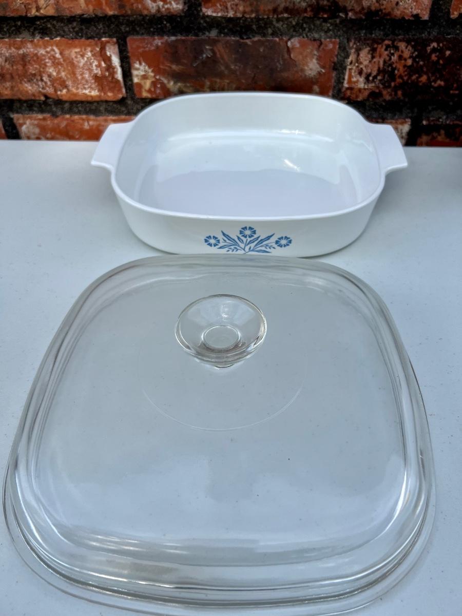 CORNING WARE set of 5 (set B) includes 2 1/2 Quart, 10 inch, 1/2 Quart, 9 3/4 X 9 3/4 and Loaf 9x5x3, All have lids except the loaf.