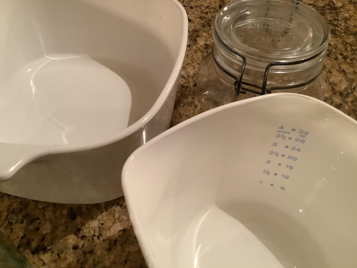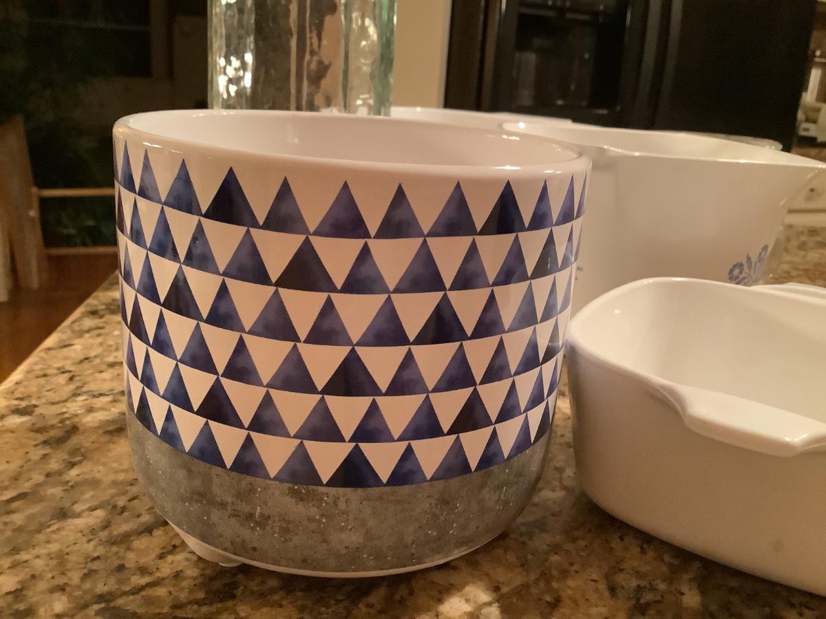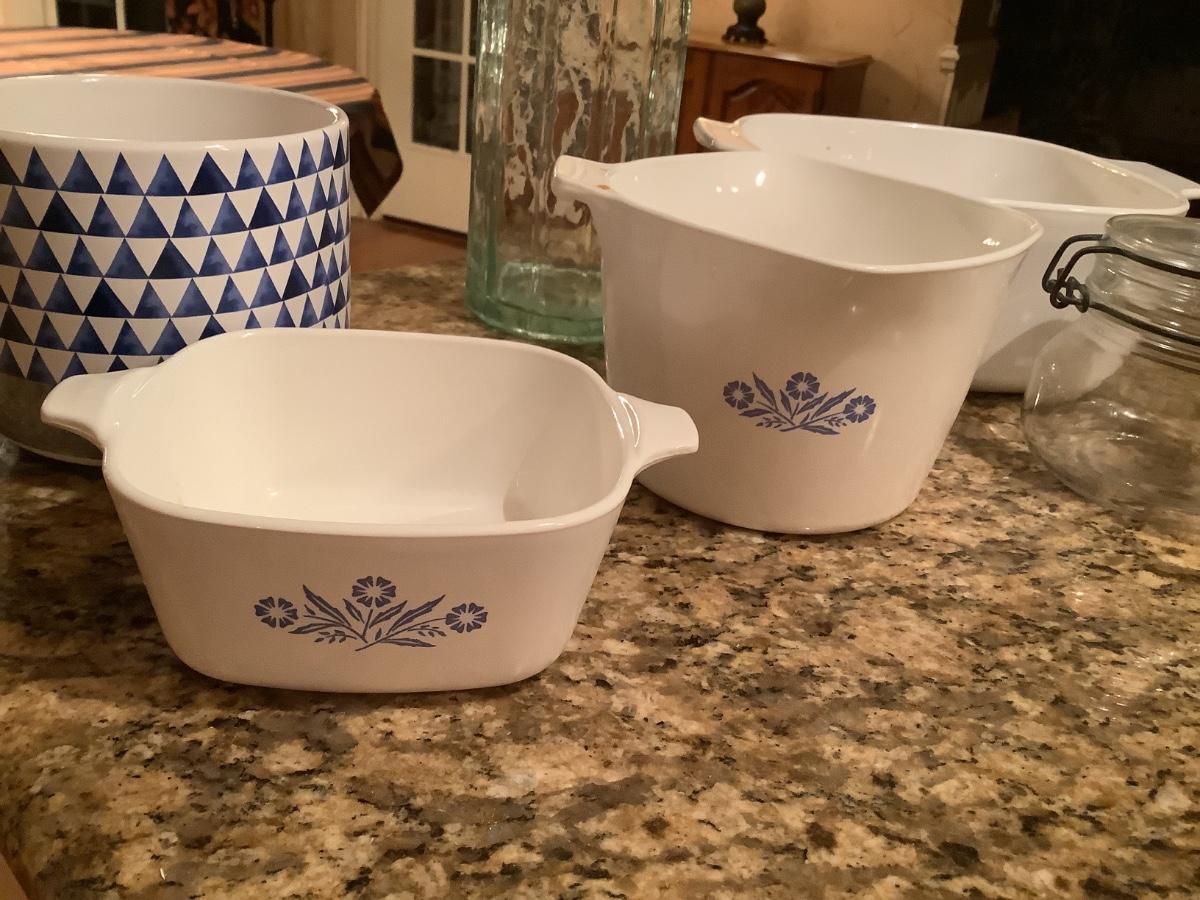 Corning ware, blue/white pot, clamp lid jars