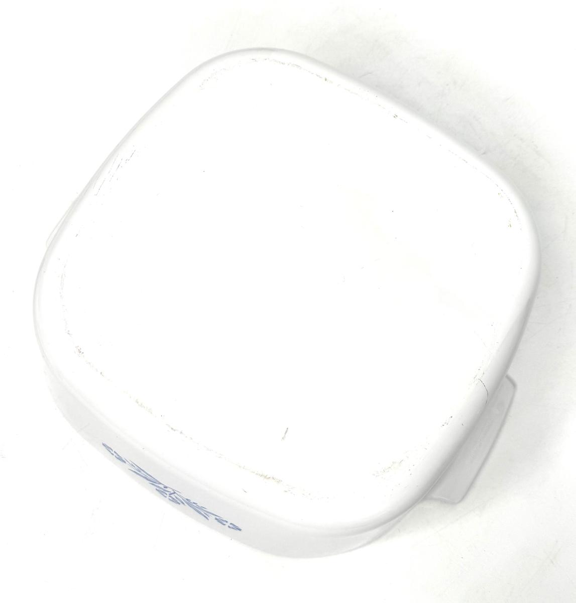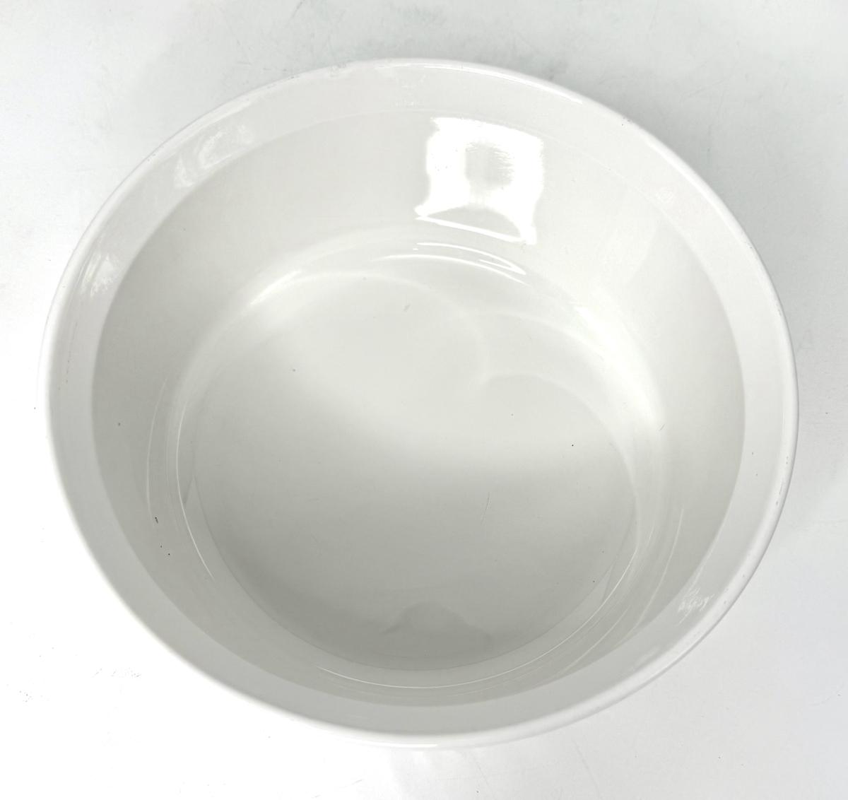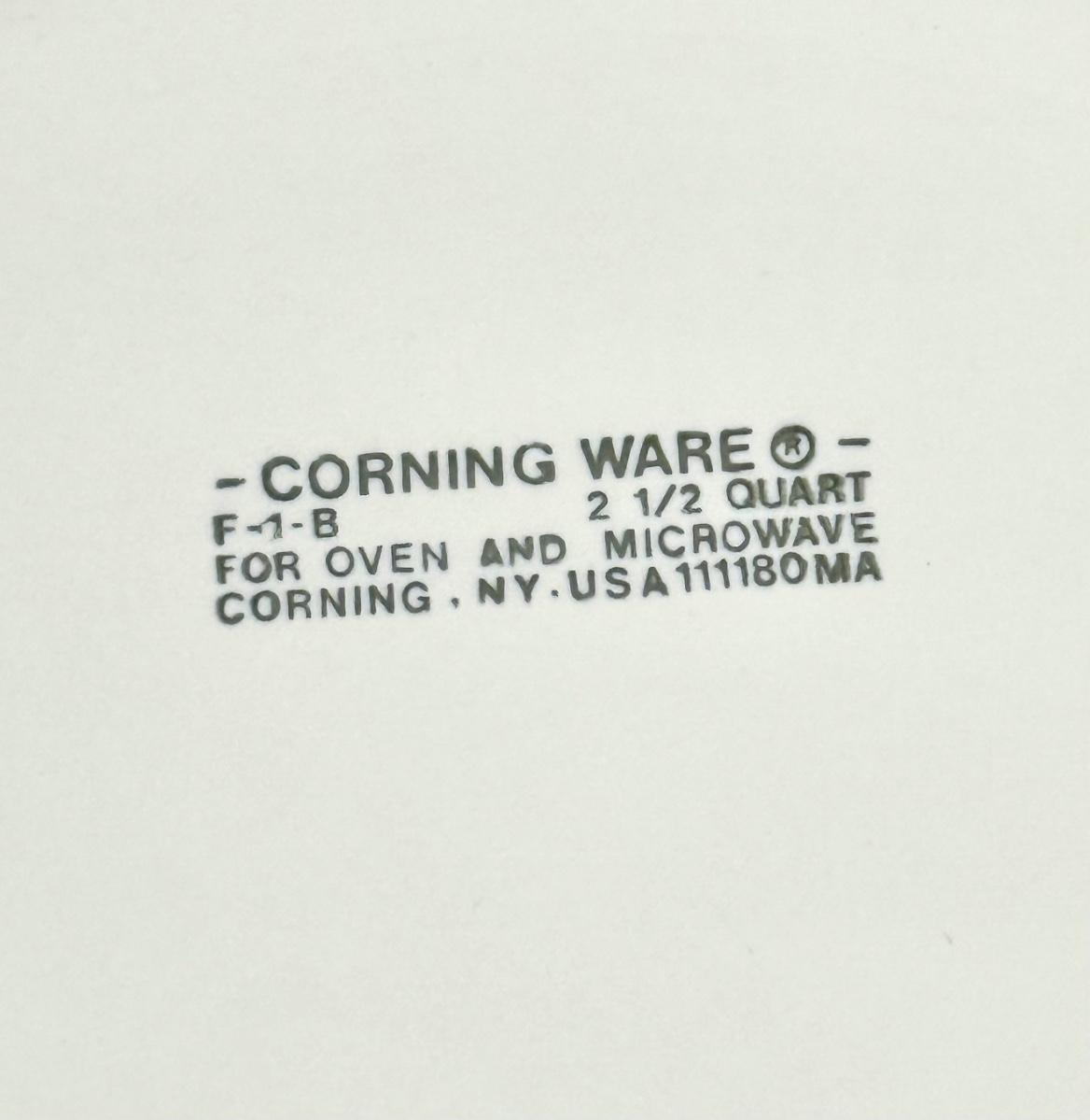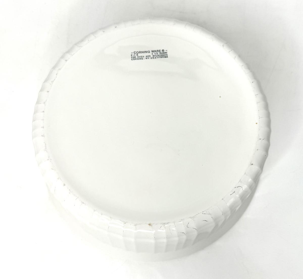 * French White 2-1/2 QT. Round Fluted Corning Ware Casserole With Lid (F-1-B). Measures 8-3/4” diameter x 3-3/4” deep.