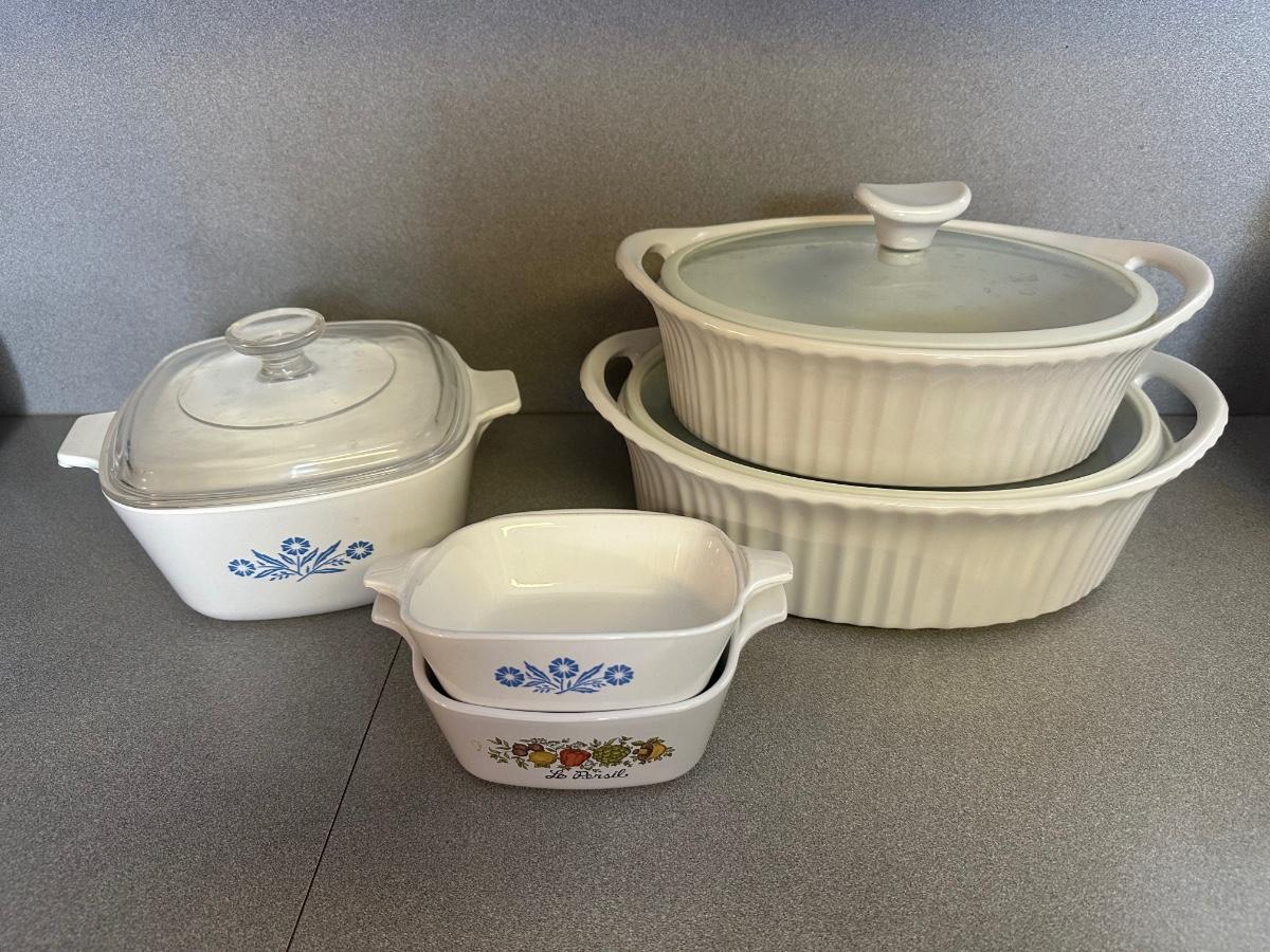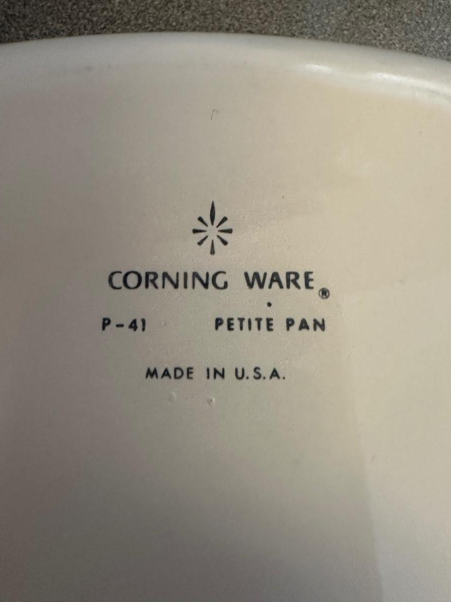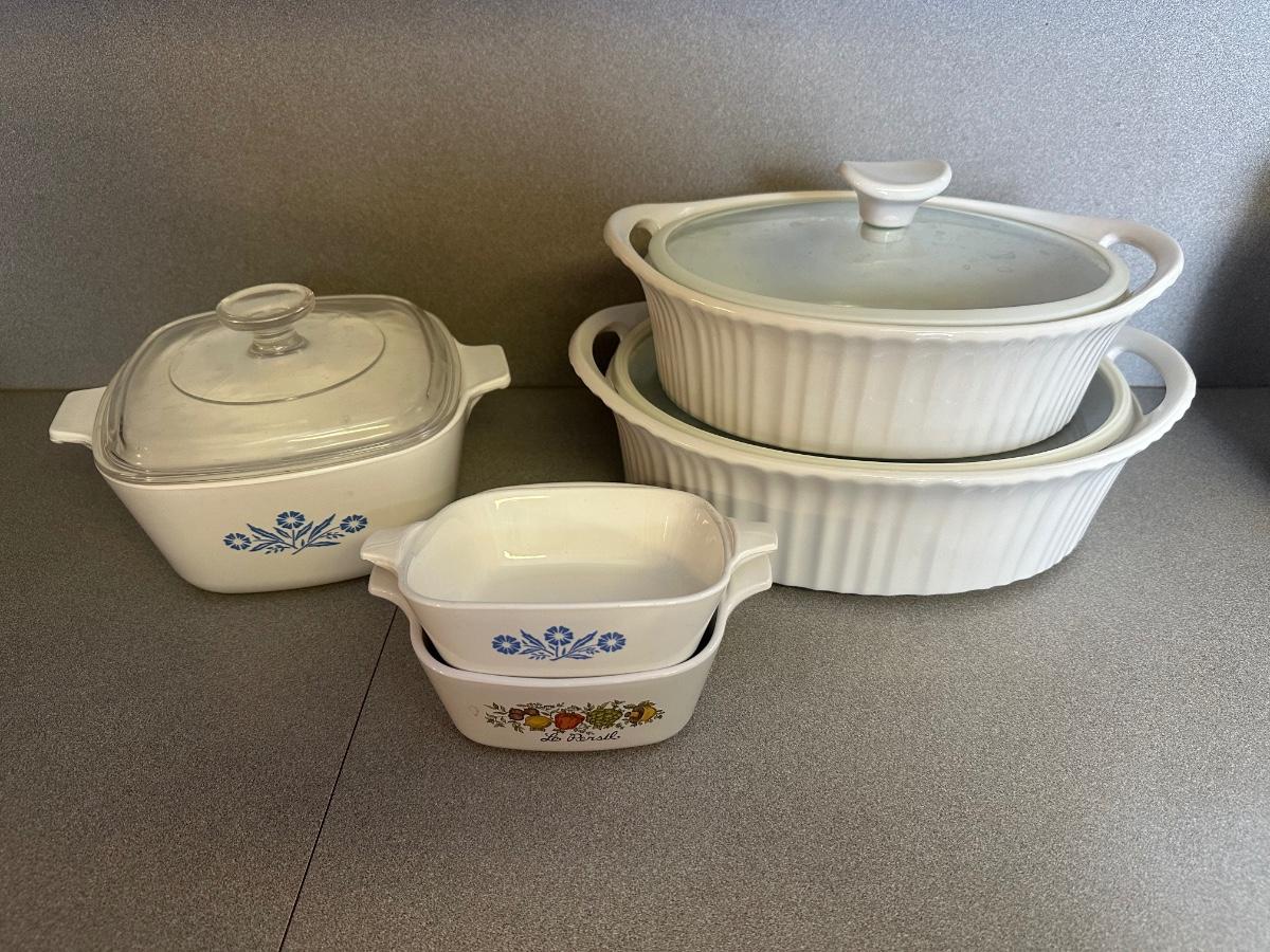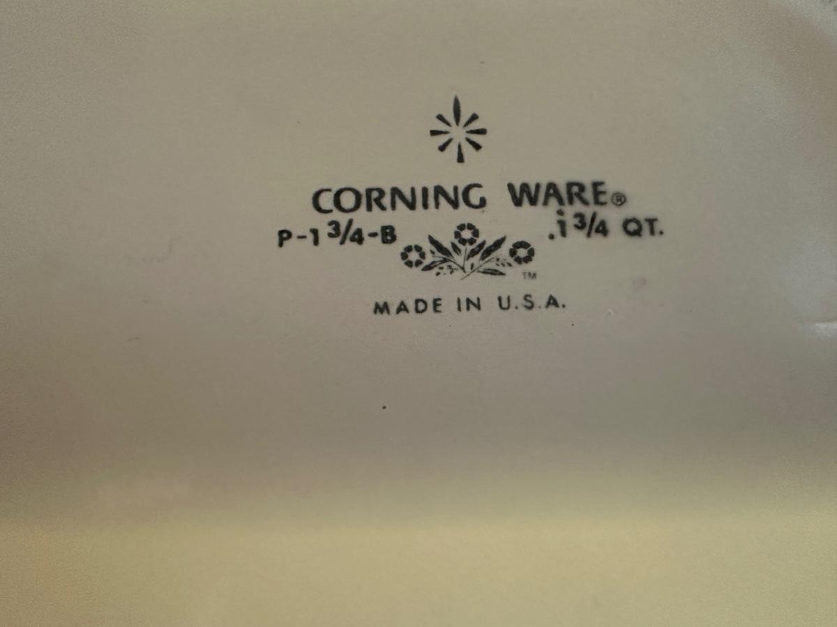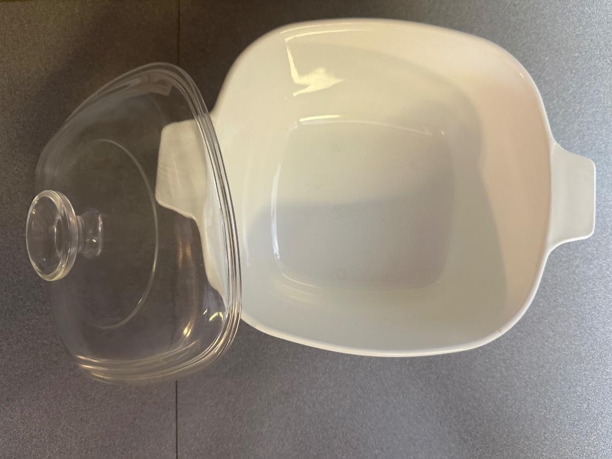 Corning dishes: petite pan, 100ml and 3/4 qt with glass lid.