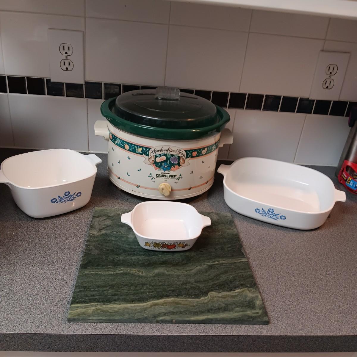 CORNING WARE DISHES AND A RIVAL CROCK POT