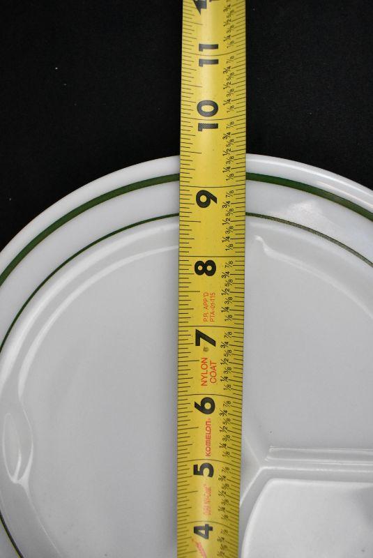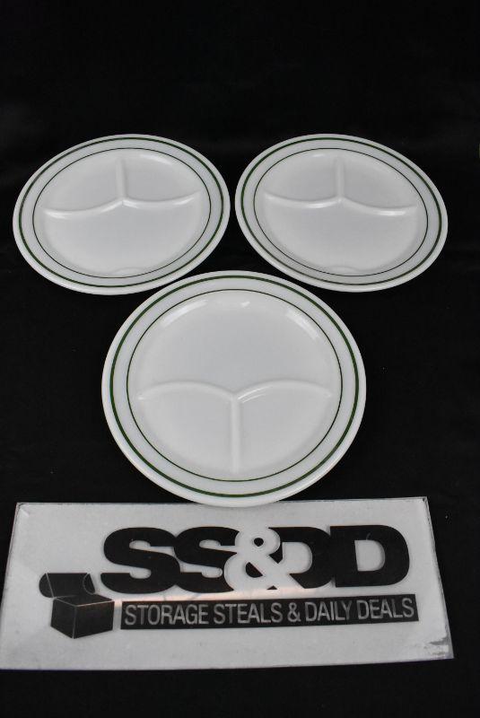 Corning Ware Divided Plates, White with Green Stripes. Qty 3 Vintage