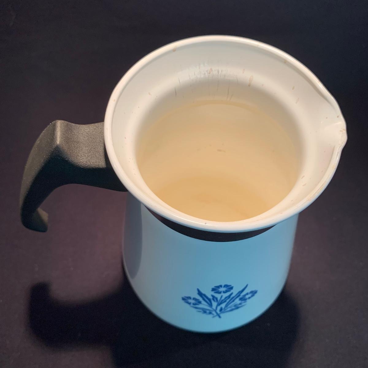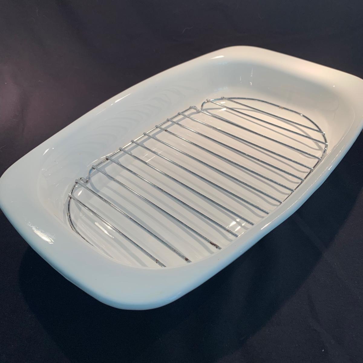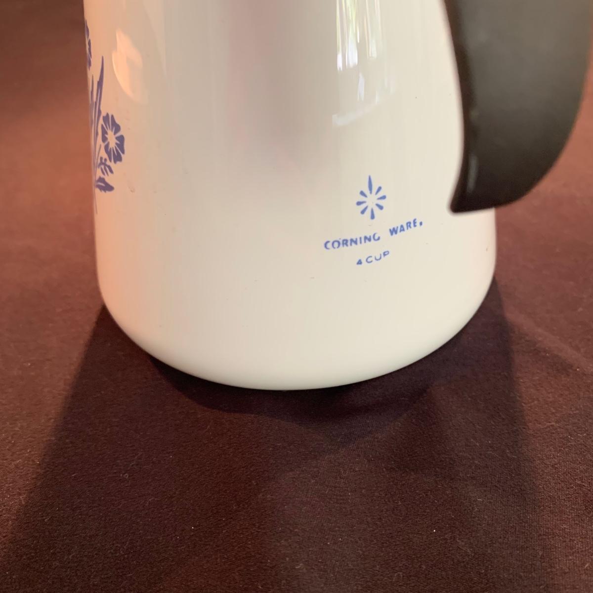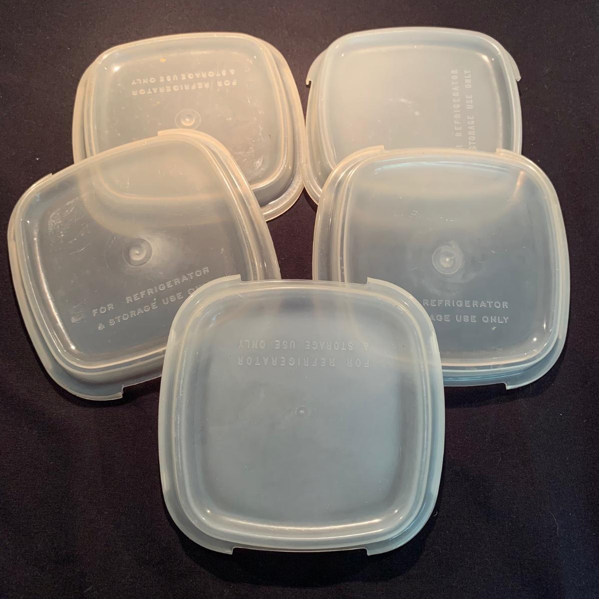 Eight Corning Ware kitchen items. One 9” pie dish, one square 1-quart dish, one roasted, one 4-cup carafe, and four 1 3/4 cup dishes with plastic lids. Items are in good to fair condition with some scratches and staining from use. A lot of the stains can probably be cleaned. No cracks seen, but one small chip was found on the underneath side of the handle of two of the small 1 3/4 cup dishes. Local pickup only.