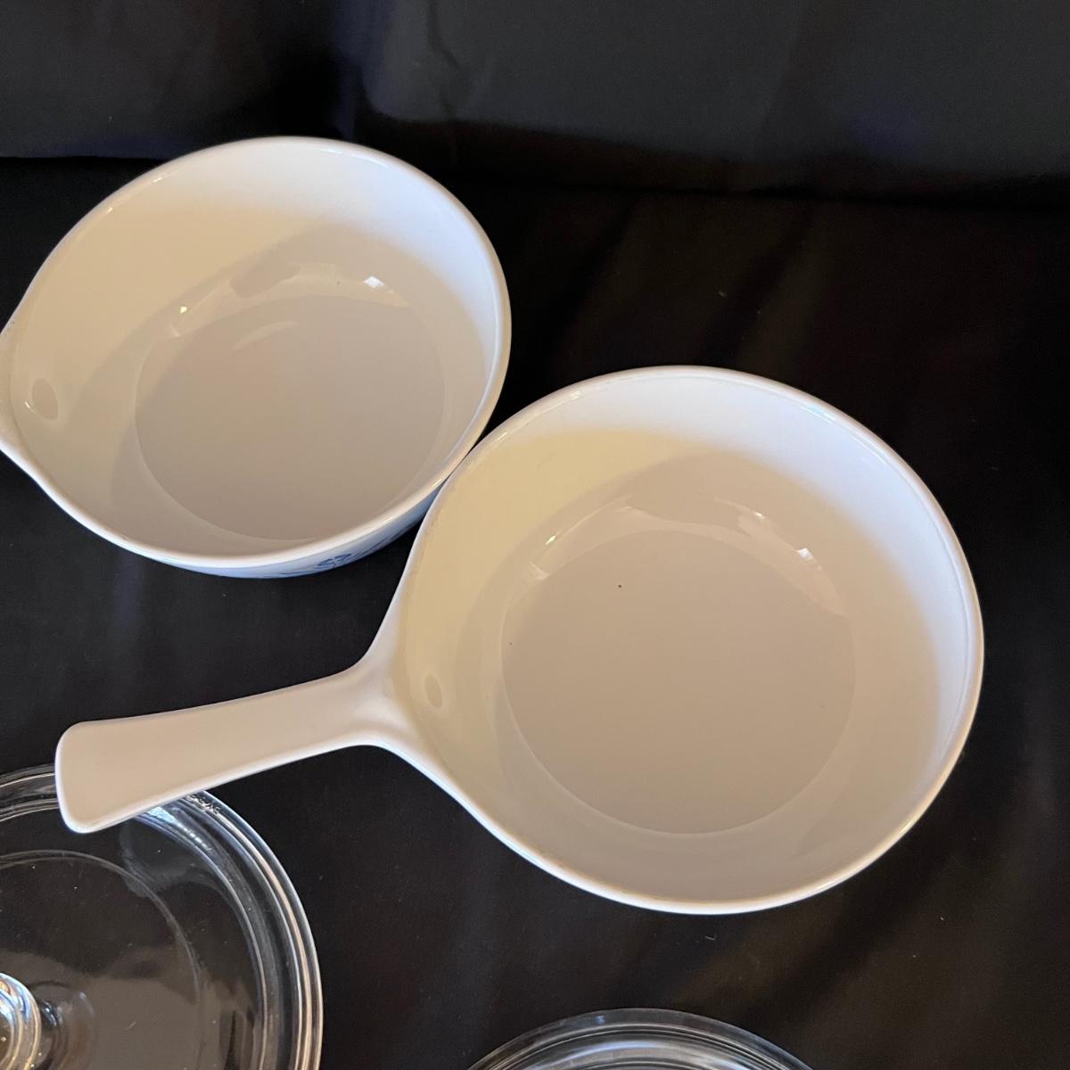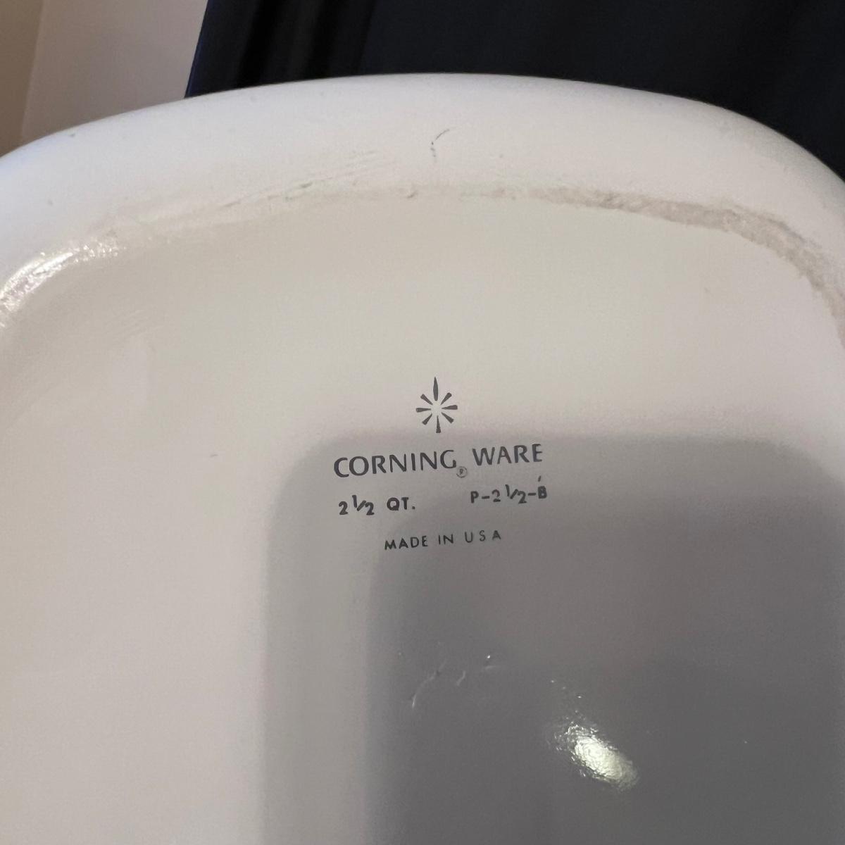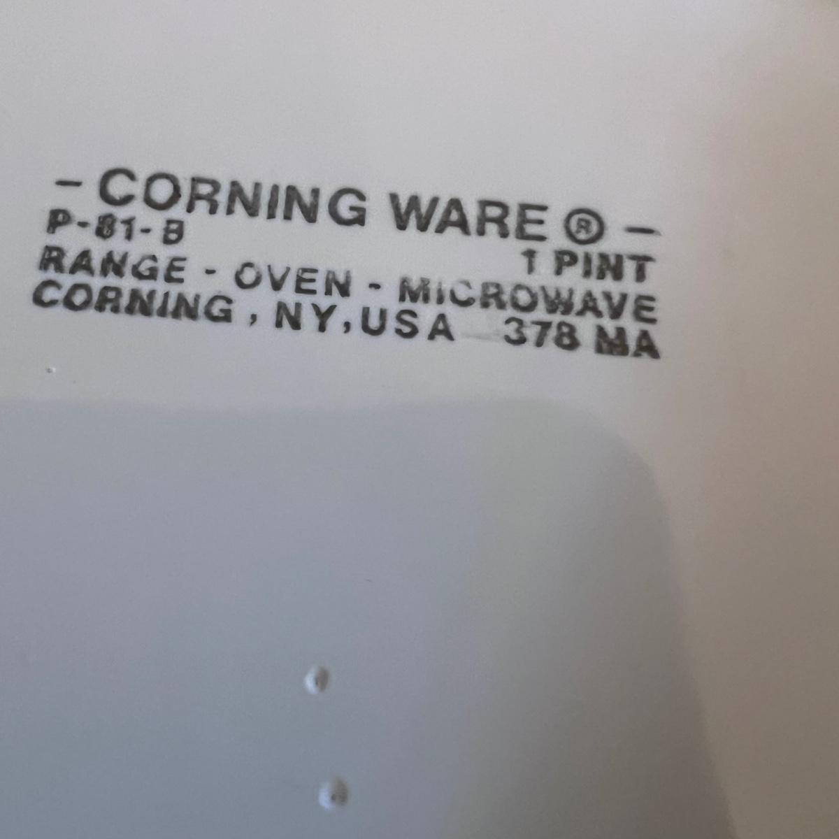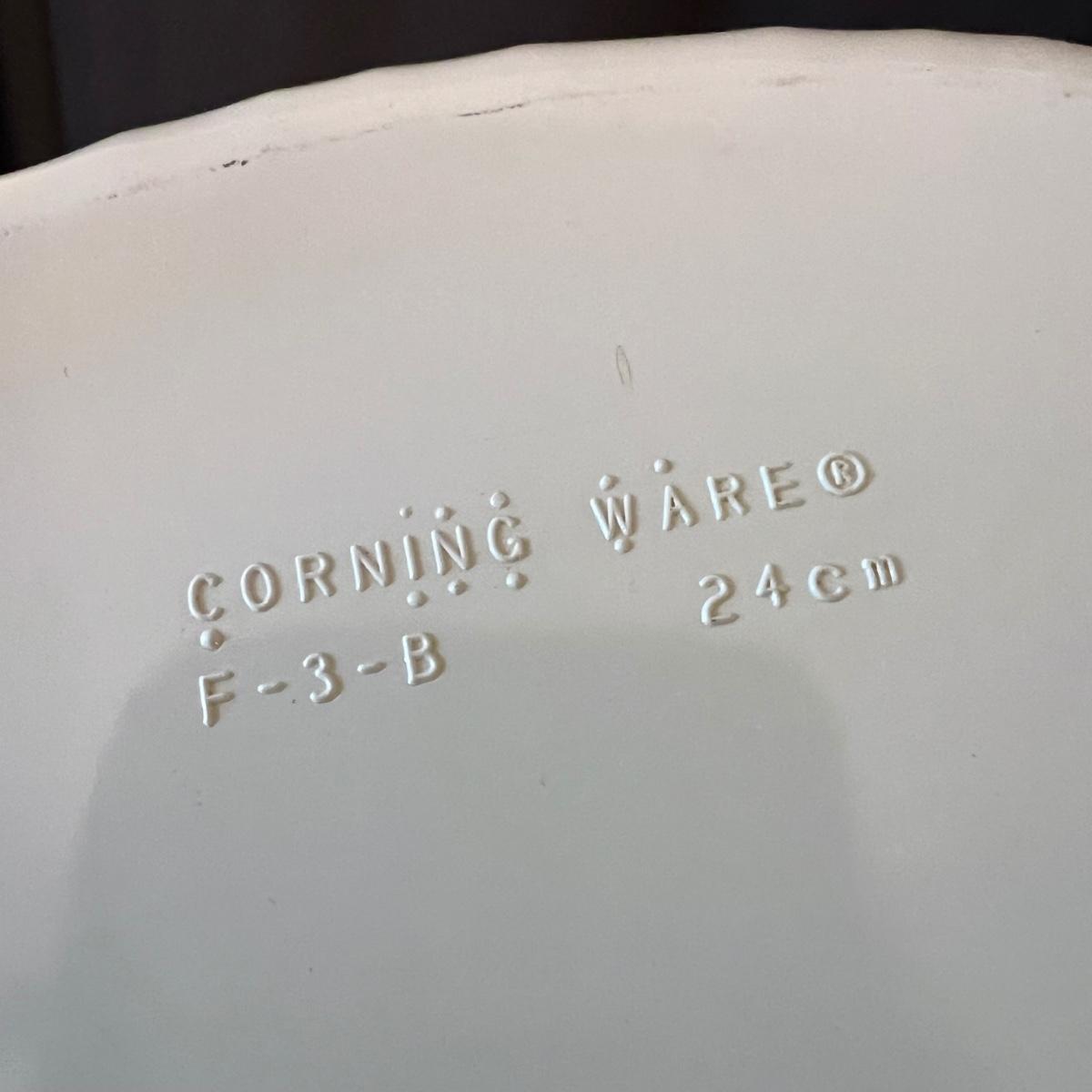 Most of these Corning Ware Dishes and plates have the Cornflower Blue pattern with one plain white pie plate and one dish with the Wildflower pattern. The larger of the three casserole dishes is 2 1/2 quart.