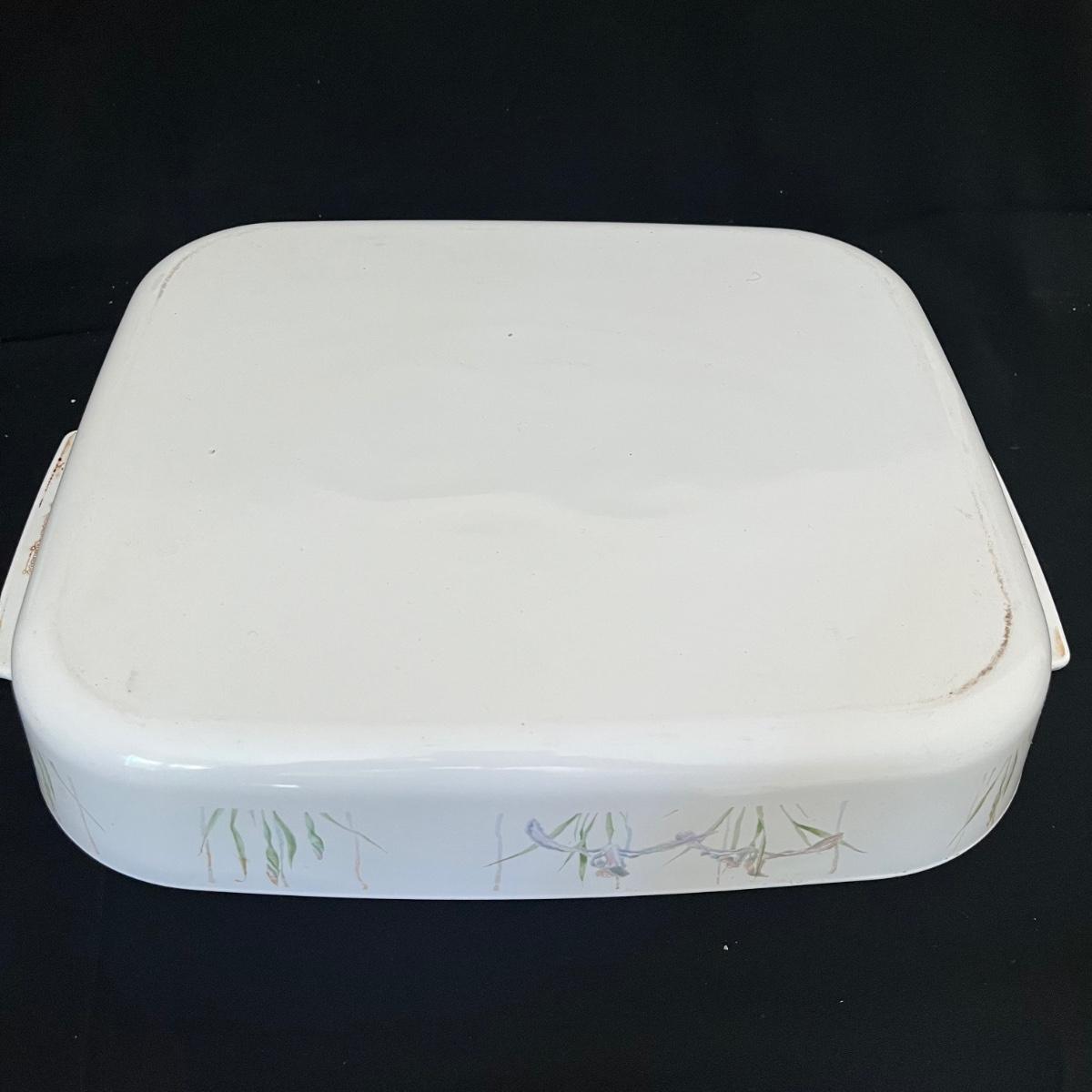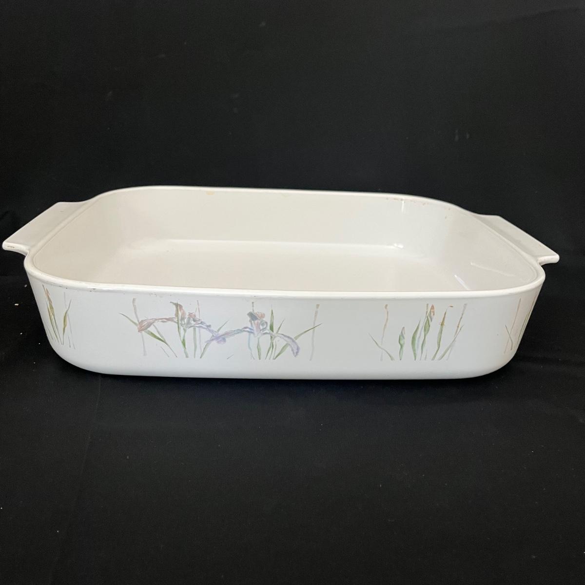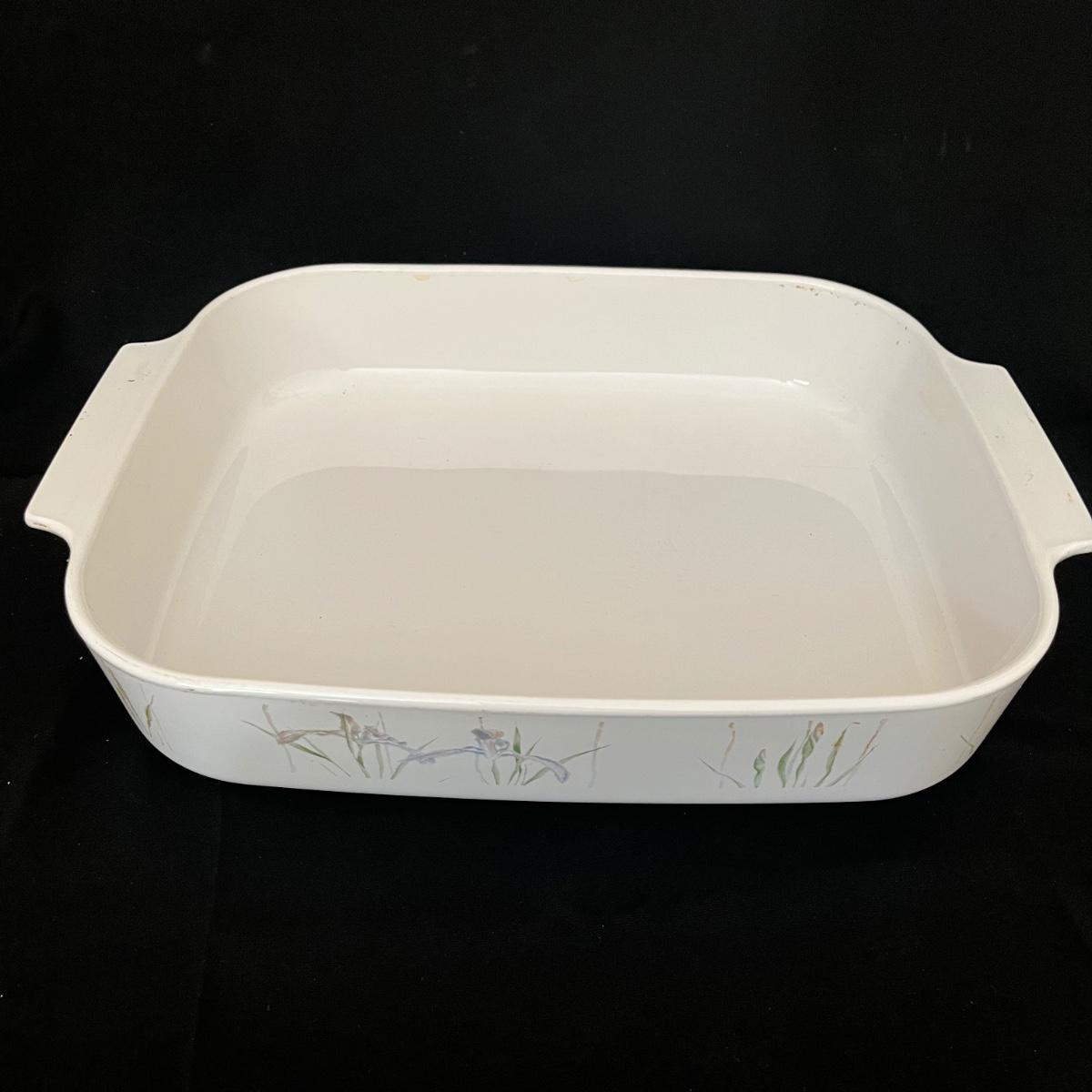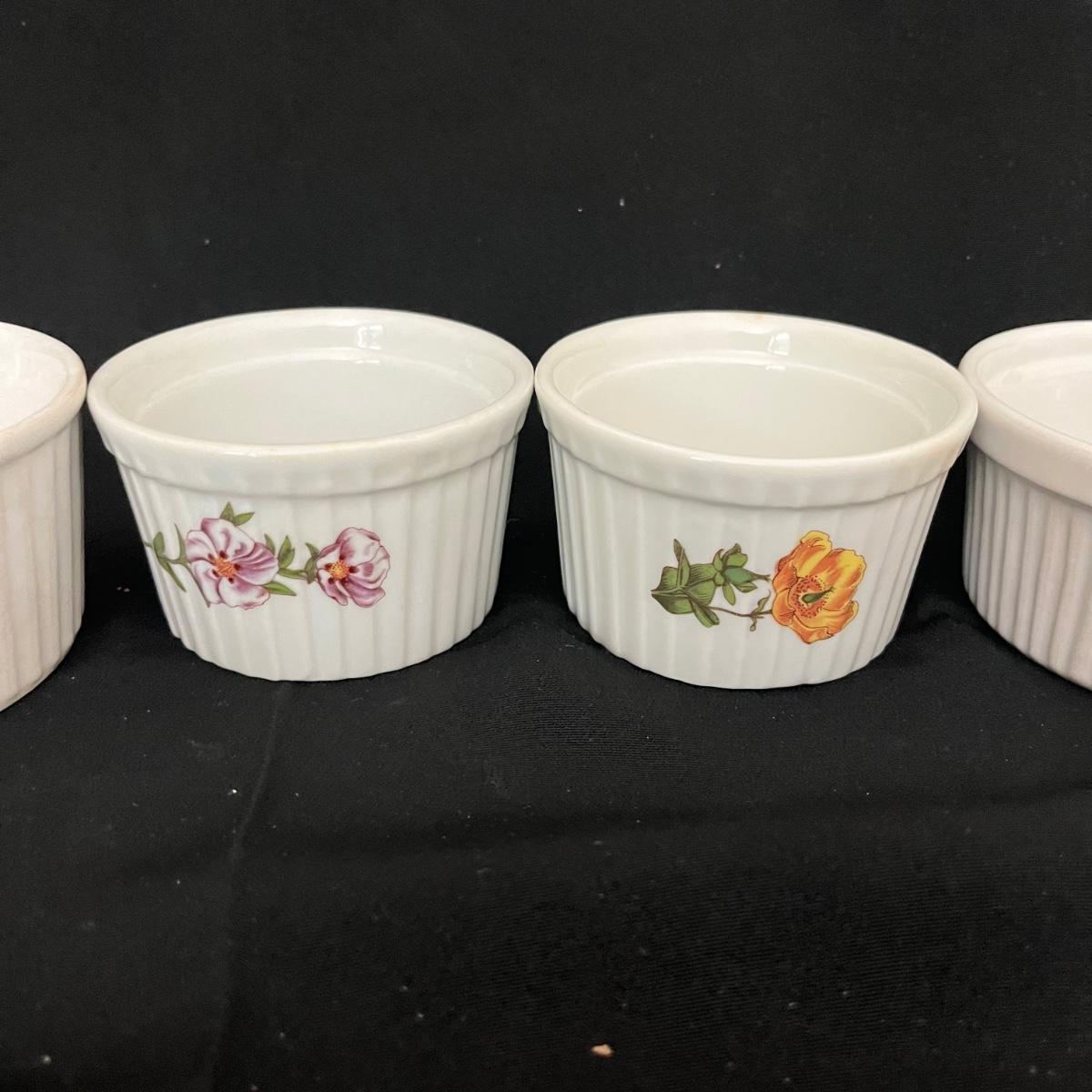 Lot includes a Corning casserole dish, two tart dishes and ten ramekins. Casserole dish measures 11” x 15” x 2.75”.