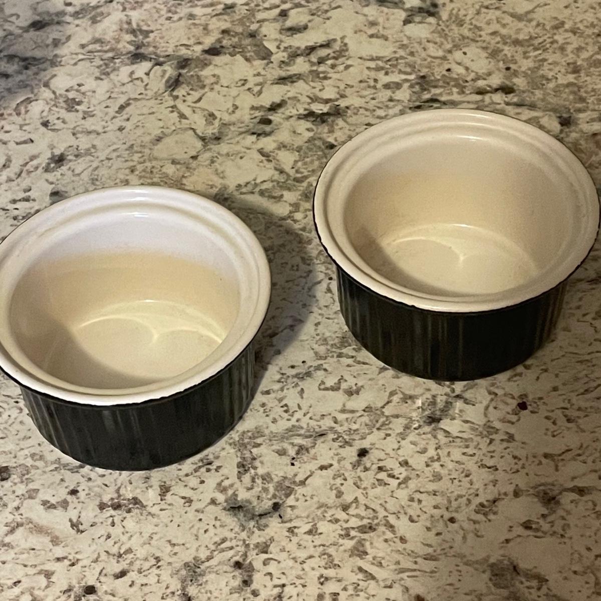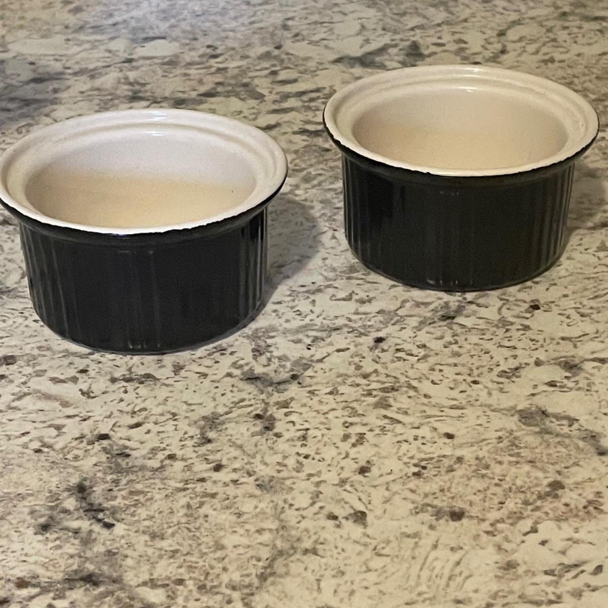 Black ramekins measure 3.5” d x 2” tall.