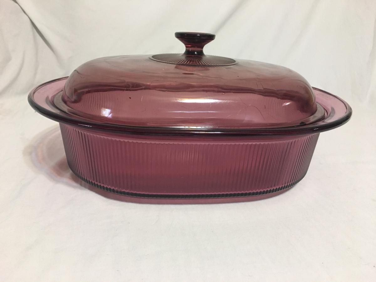 Corning Ware Pyrex Visions Cranberry 4 Qt Oval Ribbed Casserole Roaster With Lid