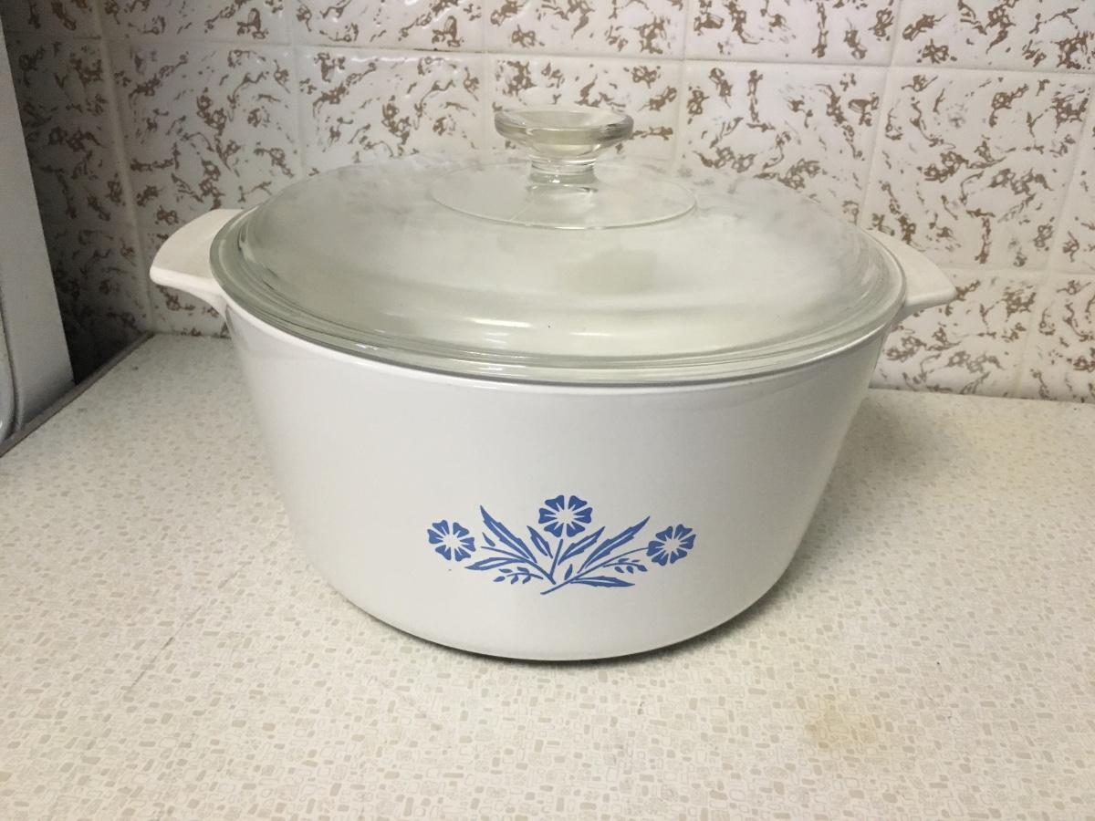 Rare cornflower 5 qt range topper. Comes with lid. Both in excellent condition. super versastile to cook with.