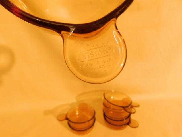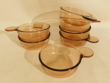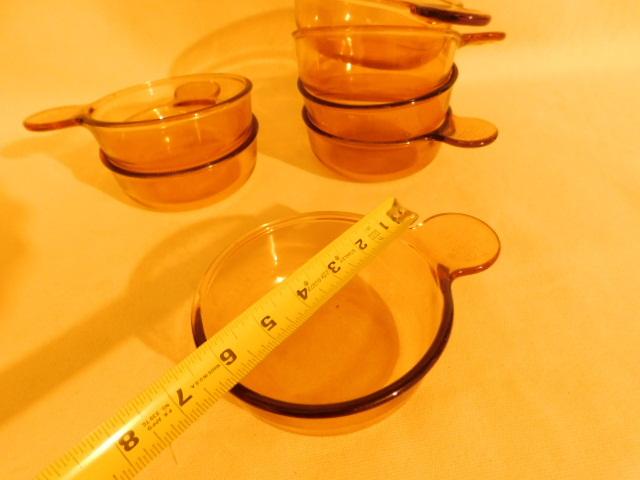 Corningware Amber Glass Small Dishes with Handles: 6" in Diameter