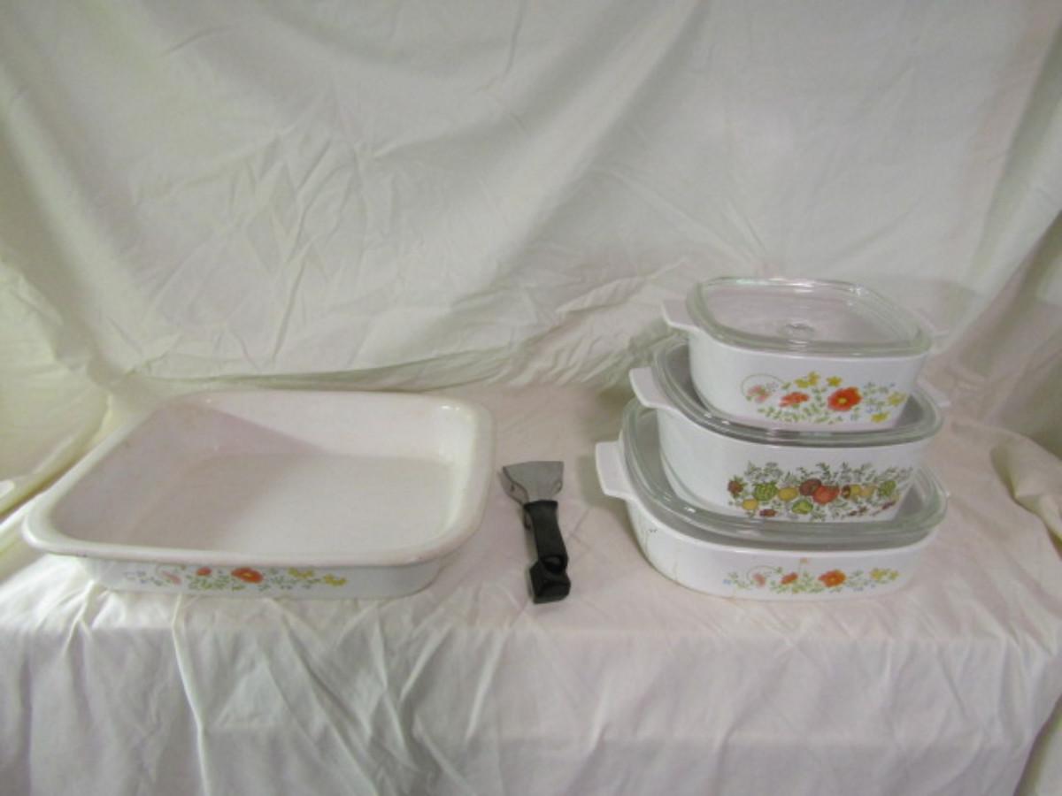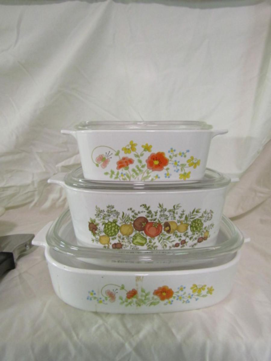 Corningware Baking Dishes. Three have lids. Please see all pictures- inside bottoms have discoloration.