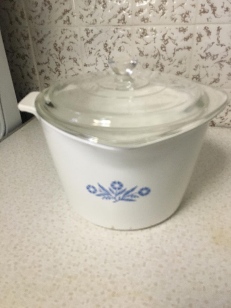 Large mixing bowl, gravy maker , whatever you want it to be. Has it's own lid. Excellent condition except for some wear on the bottom.