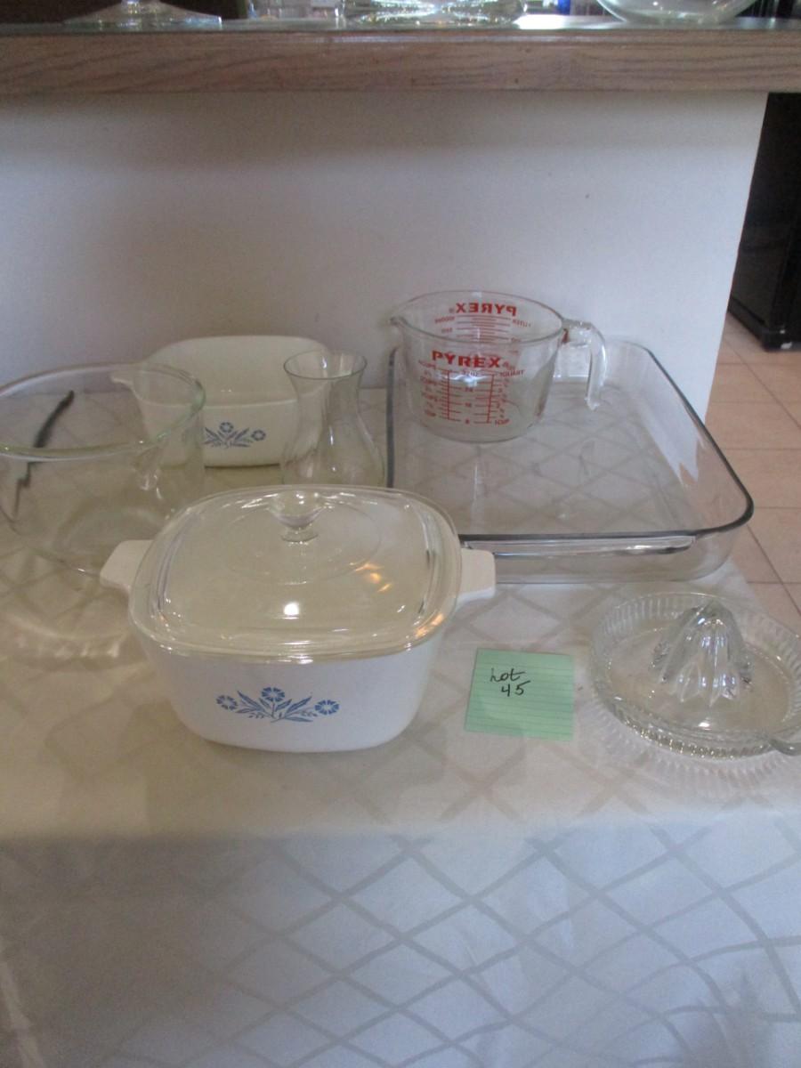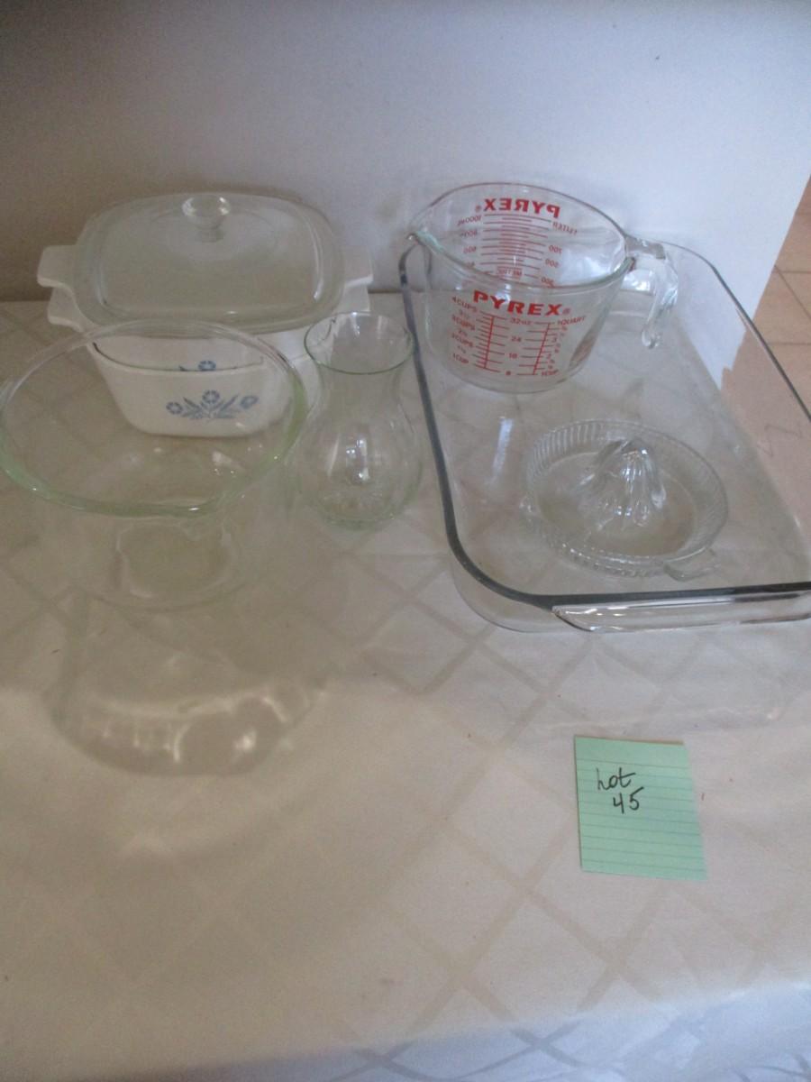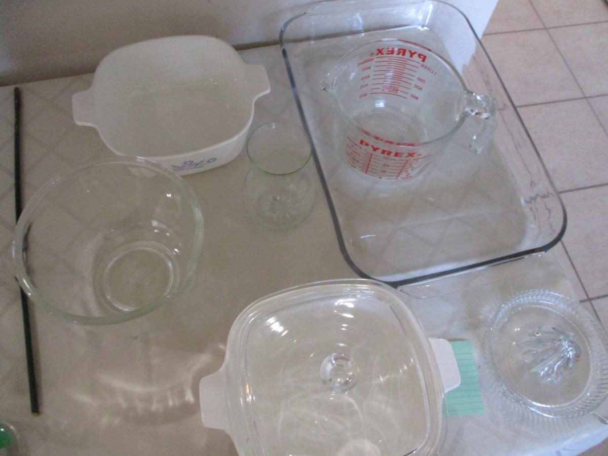 Pyrex measuring cups, Hand juicer, large glass measuring cup,