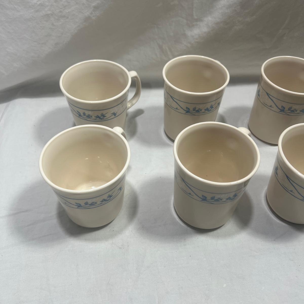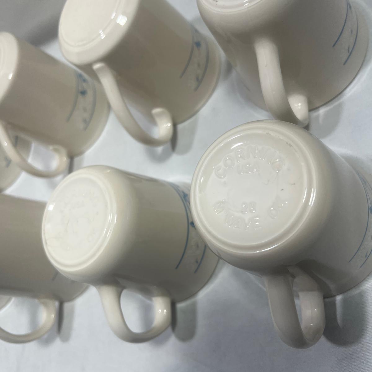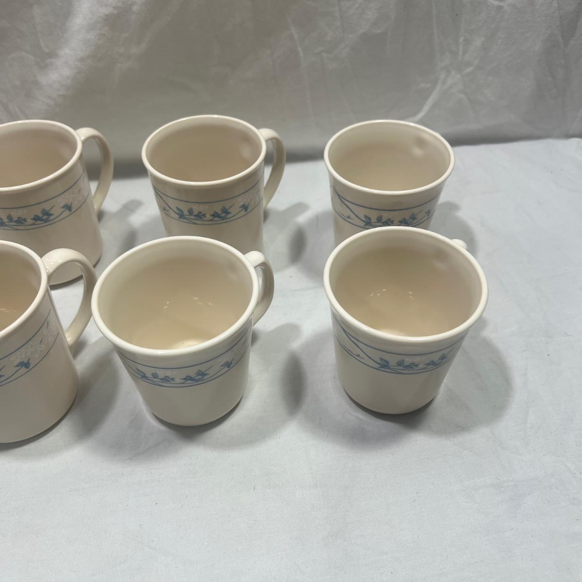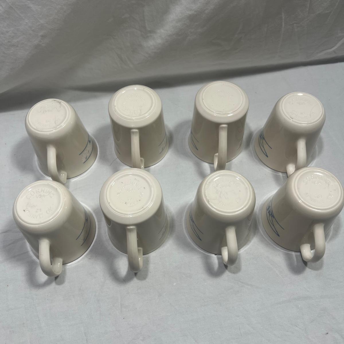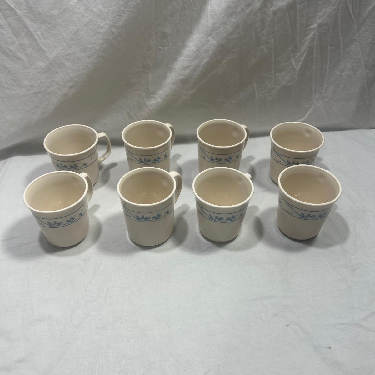 8 Corningware mugs with a simple blue design