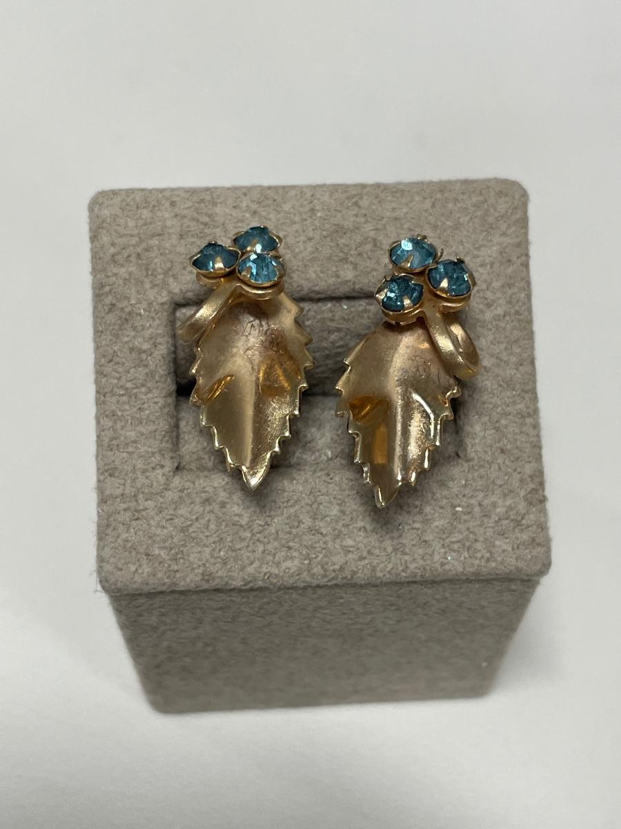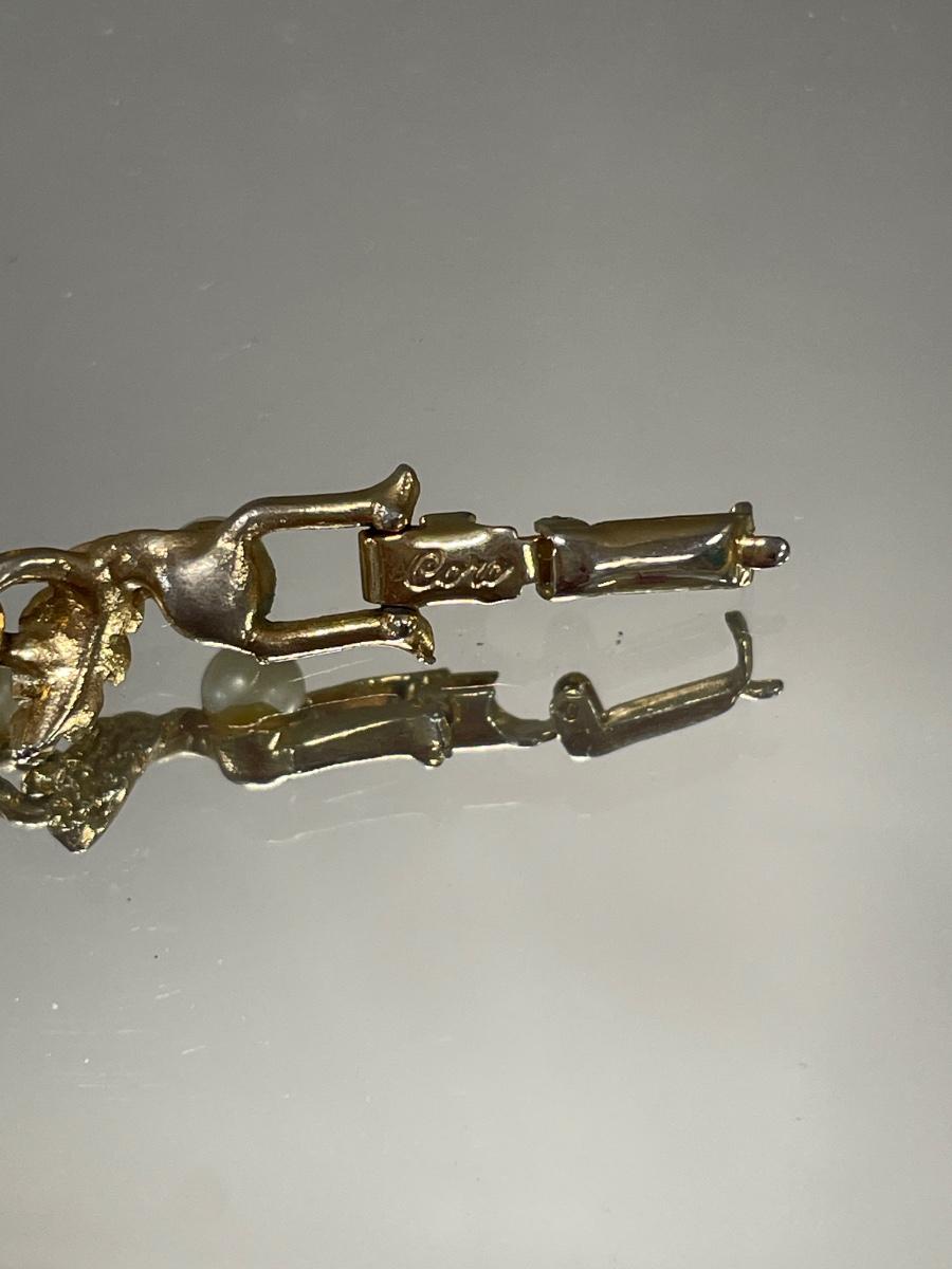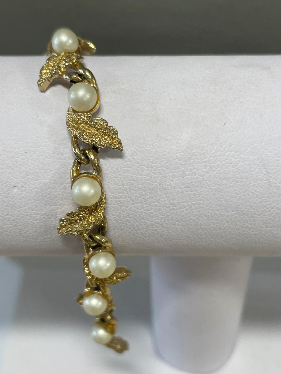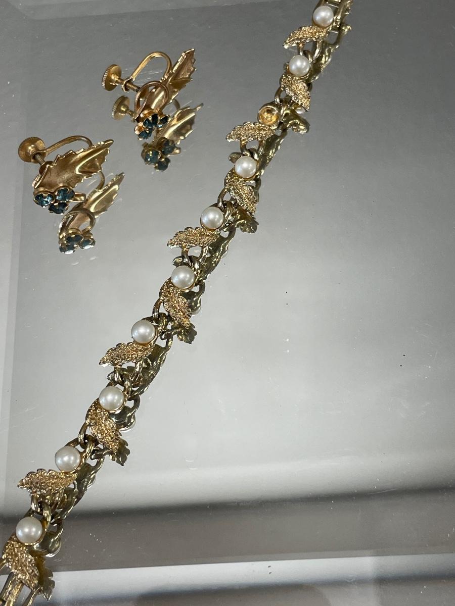 Signed coral leaf and faux pearl bracelet with screw back unsigned earrings