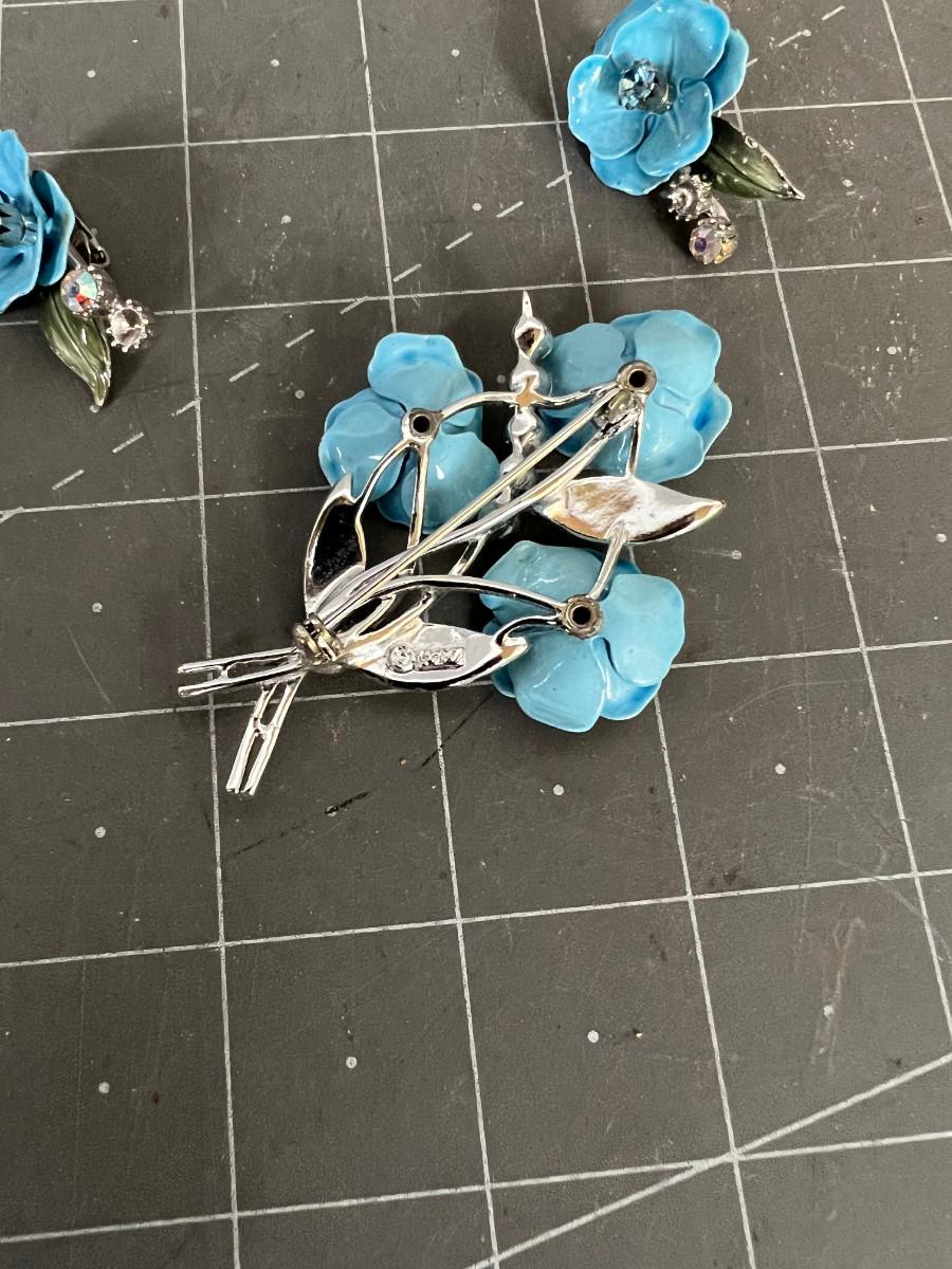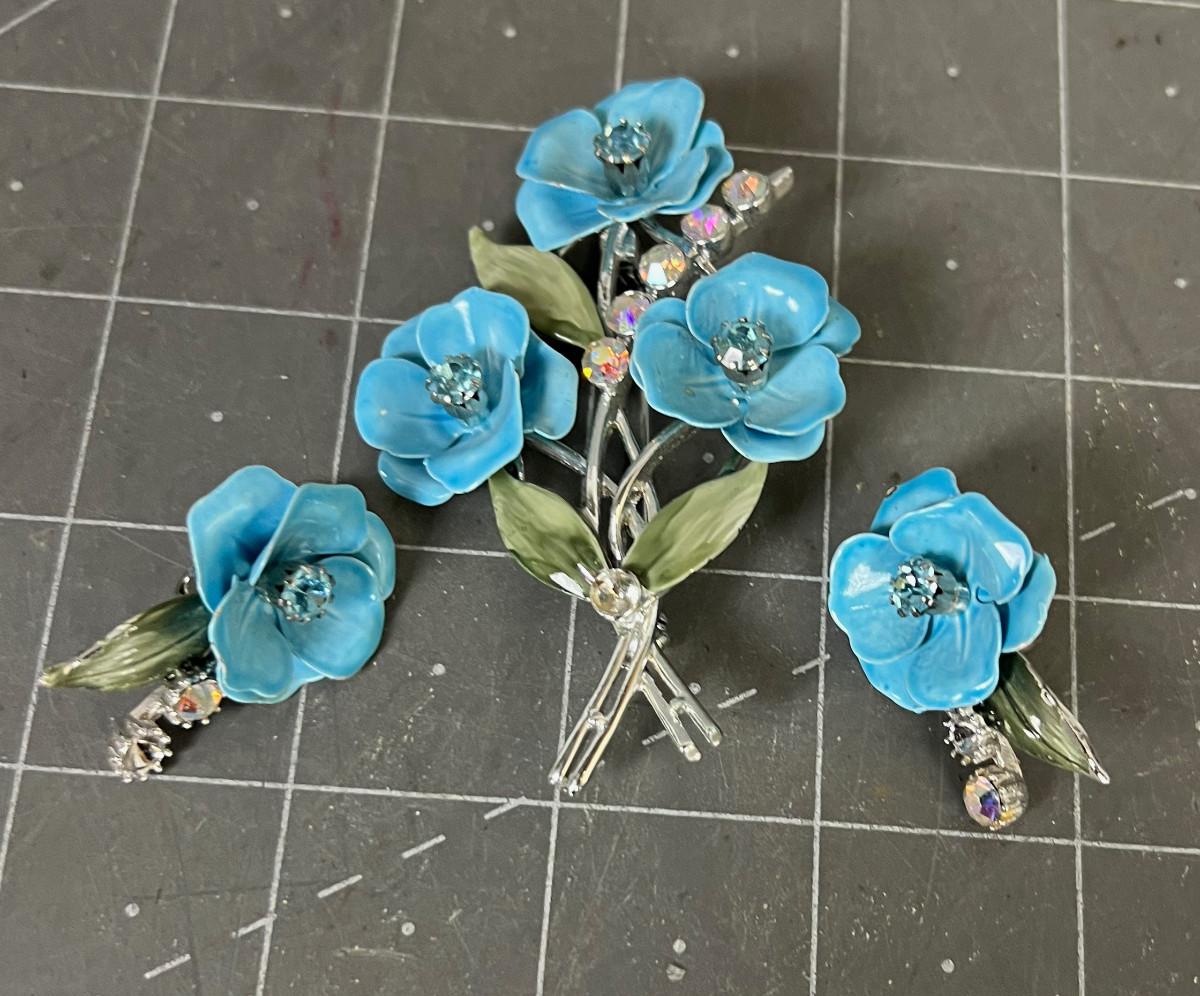 Coro - LOVELY Light Blue Pin with Matching Earrings
