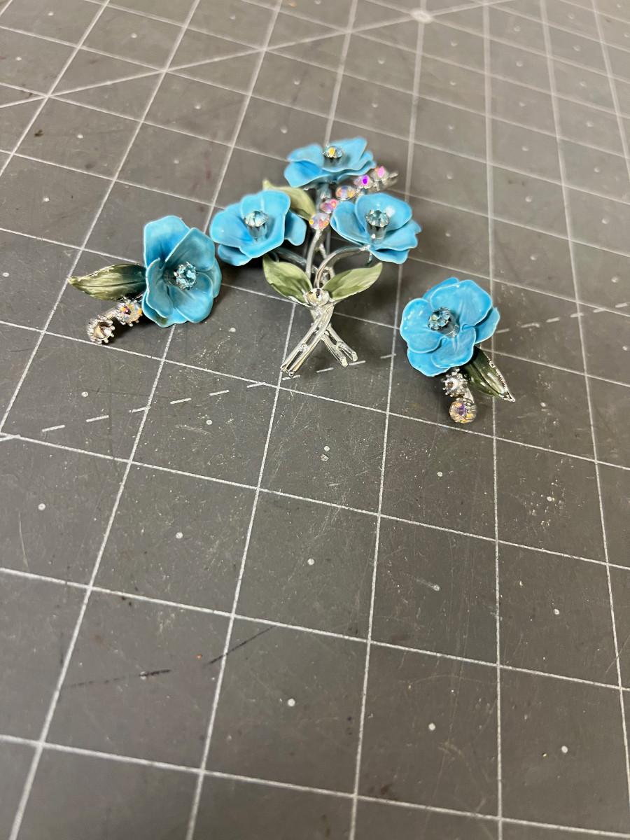 Coro - LOVELY Light Blue  Pin with Matching Earrings