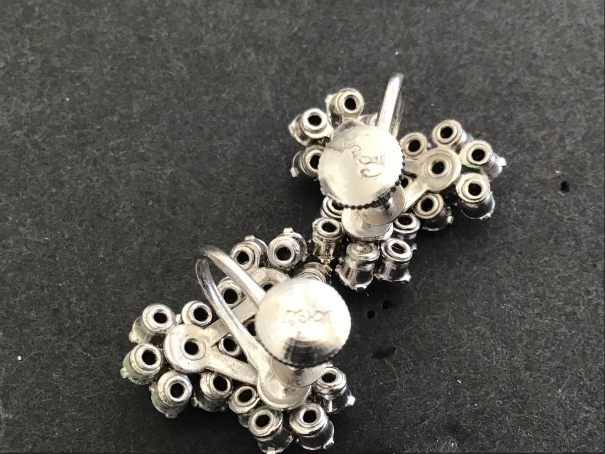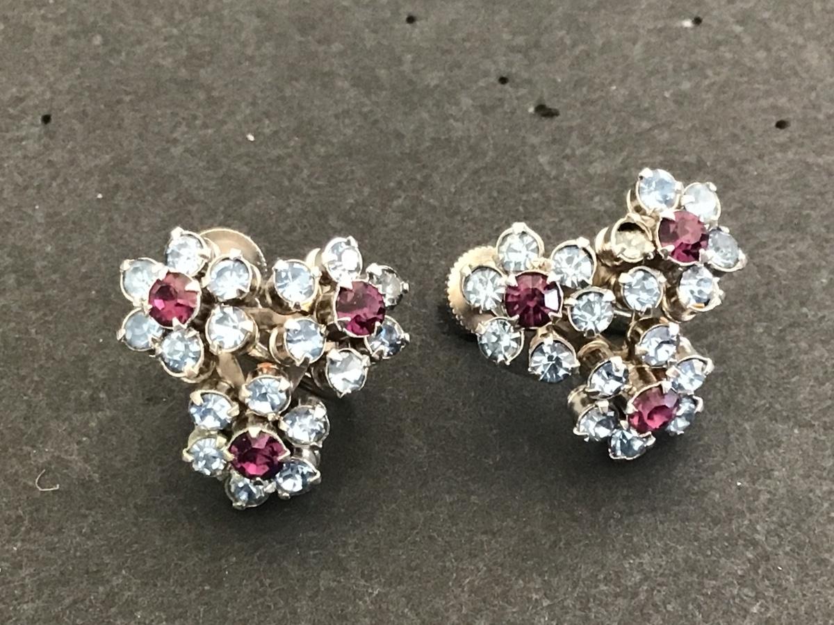 Coro Signed Rhinestone Flower cluster Earrings. Excellent