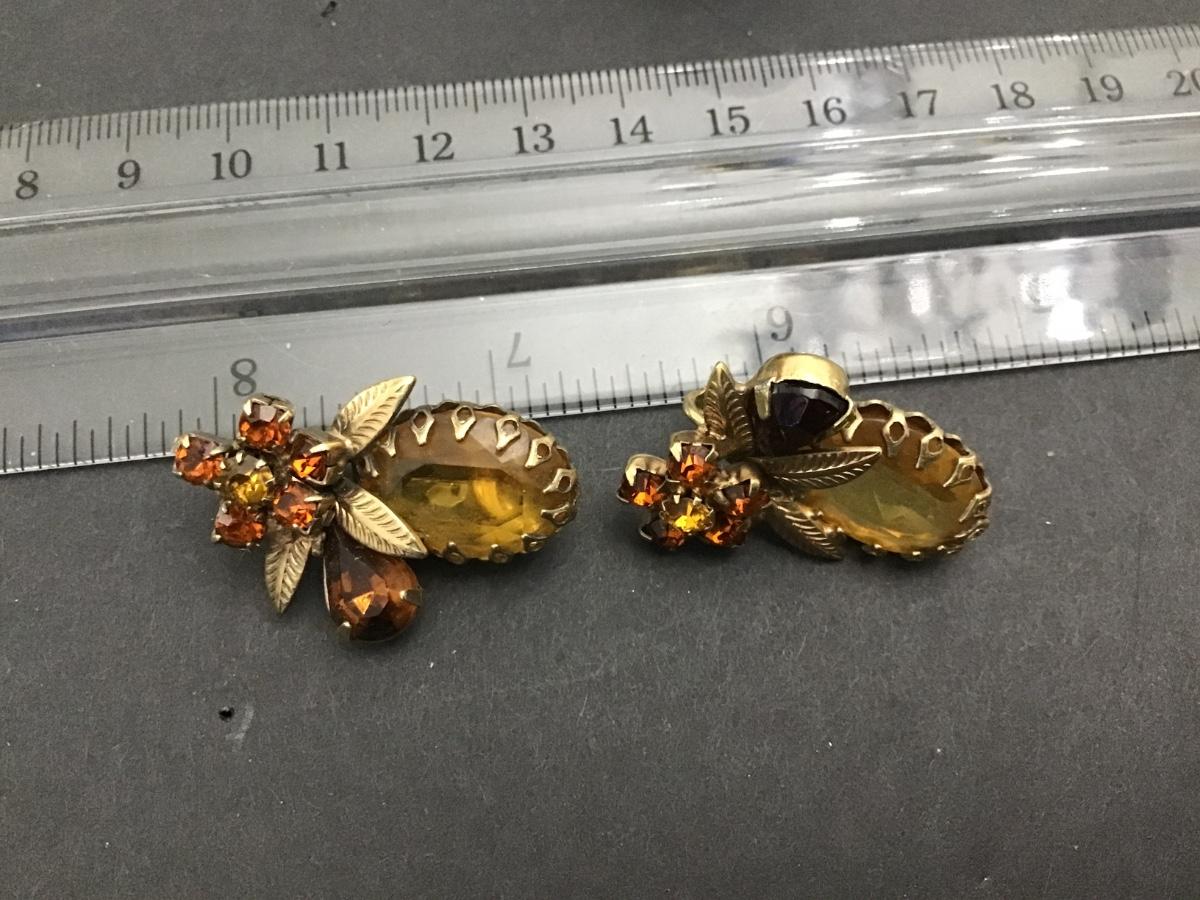 Coro Topaz Amber Signed Clip on Earrings
