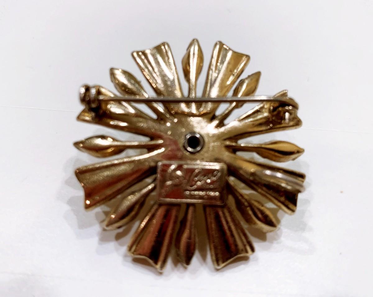 Vintage Corocraft Sterling Silver and Rhinestone Sunburst Flower Brooch/Pendant. Designer Adolf Katz