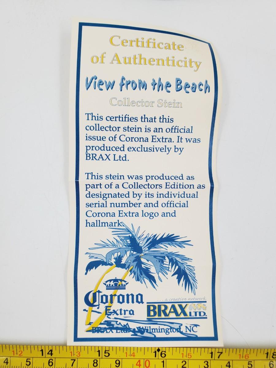 Numbered 0834, Corona Extra Collector Stein, good condition with certificate of authenticity.