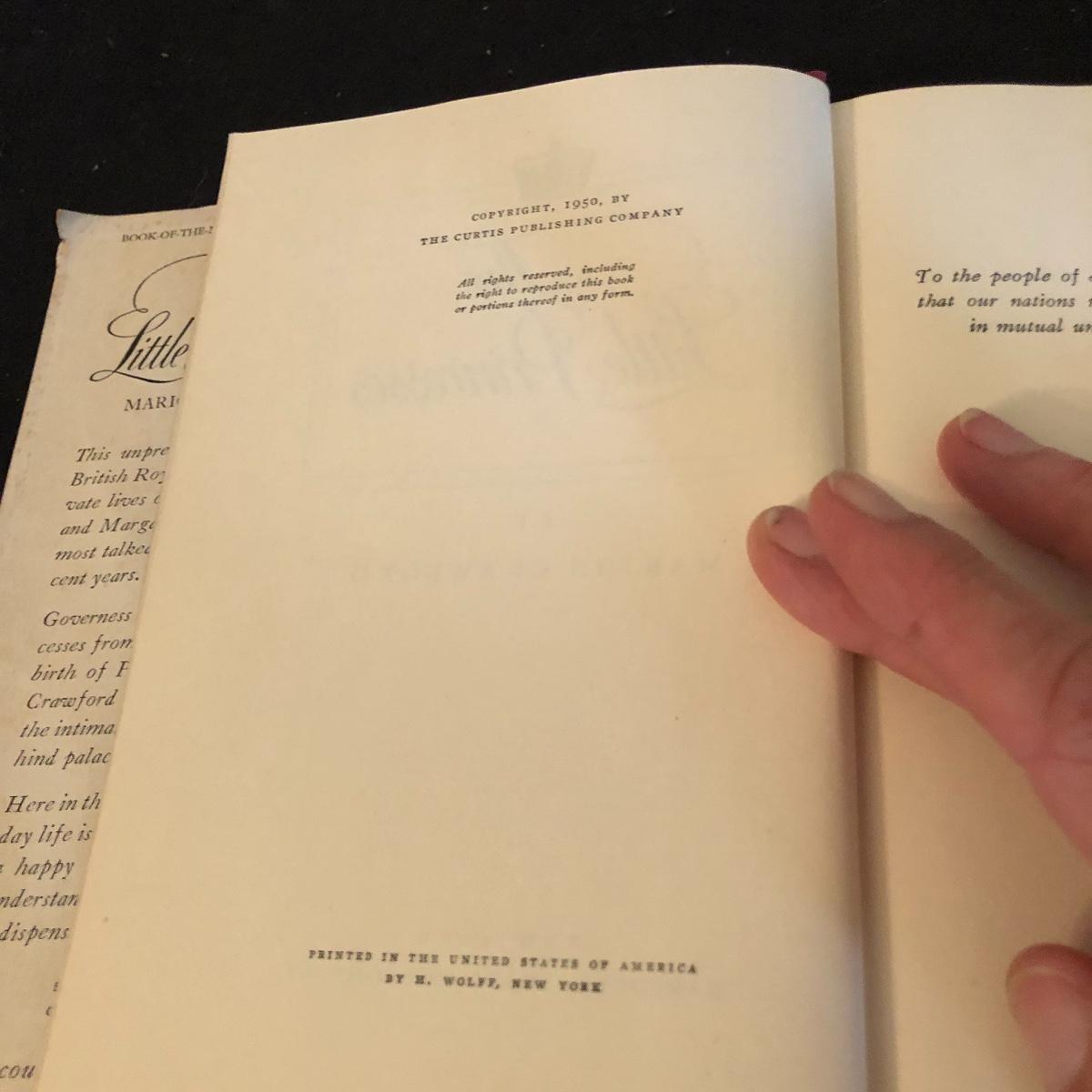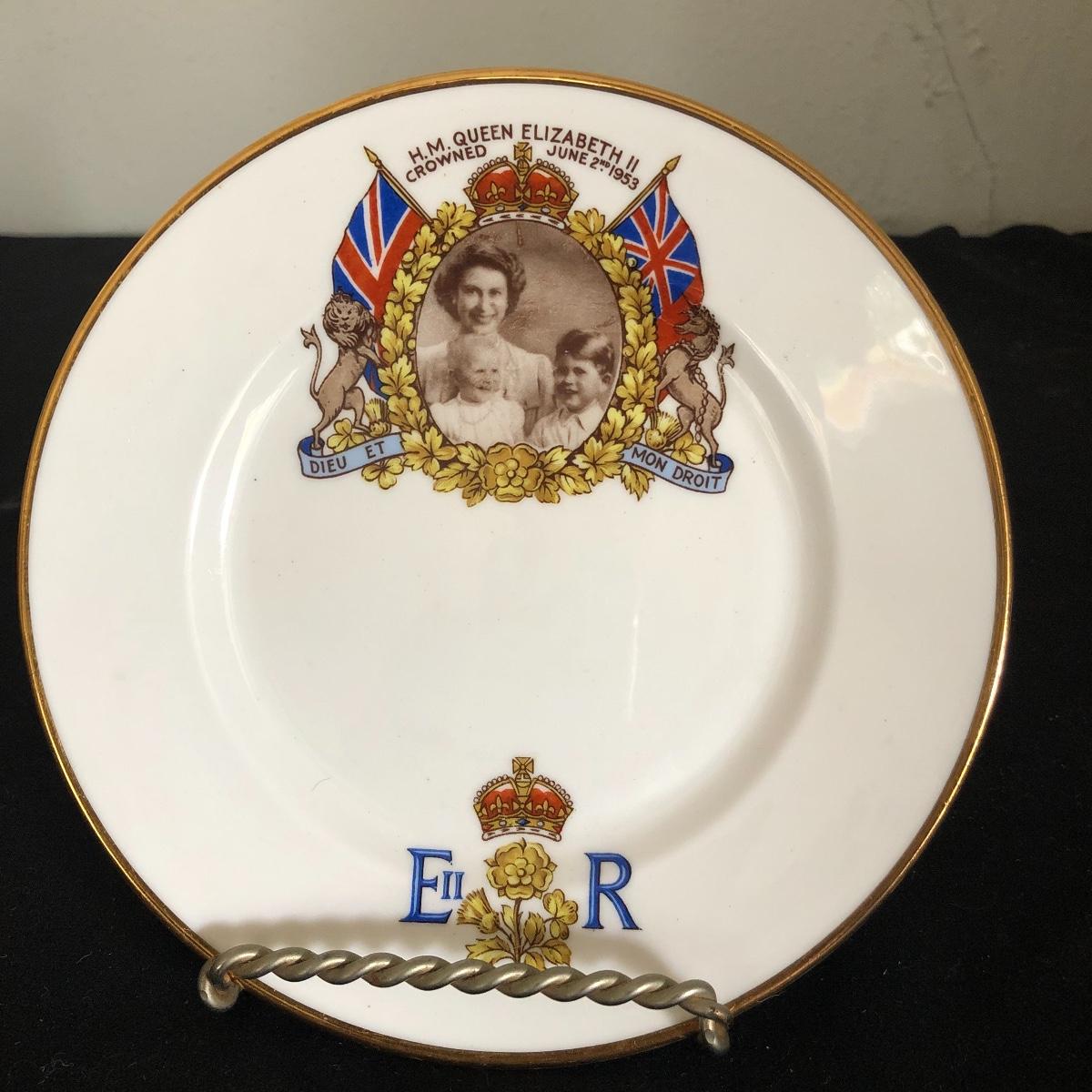 A novel titled Coronation by Paul Gallico is accompanied by a bone China coronation HRH plate and another book titled Treasures from the Royal Collection. Another book titled The Little Princesses and a collector fork were added later to this lot.