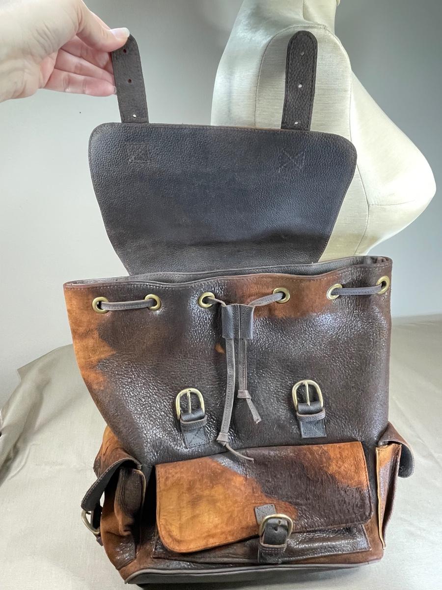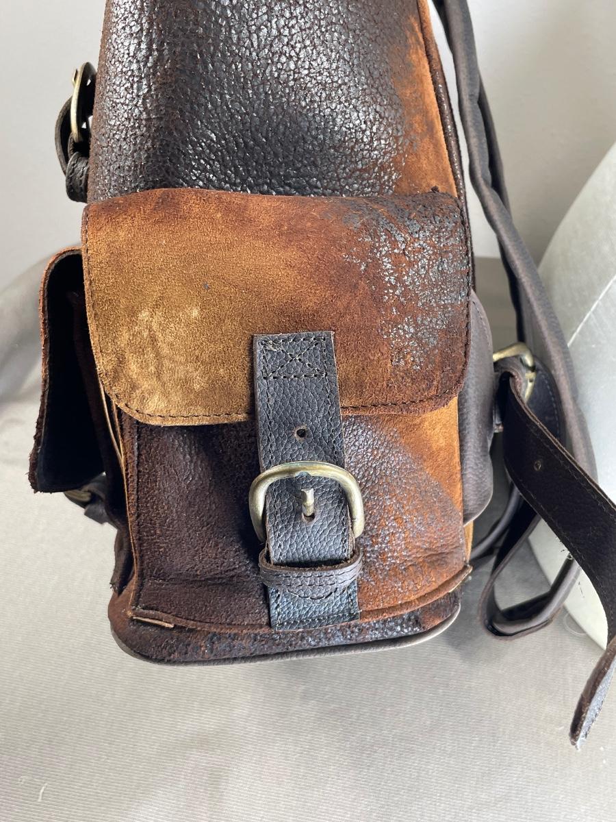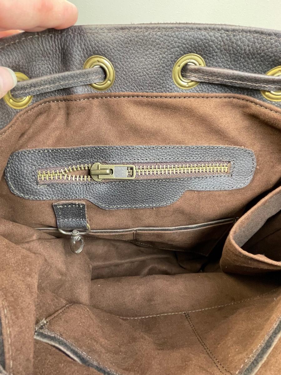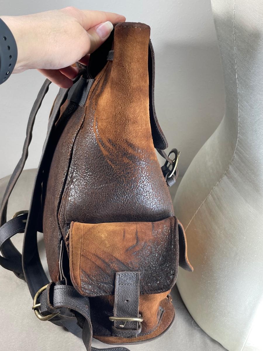 NWOT this rugged unisex backpack is extra large and heavy duty leather. Has multiple exterior pockets, padded straps and is made in Mexico. From Scheels. 15” wide by 18” high.