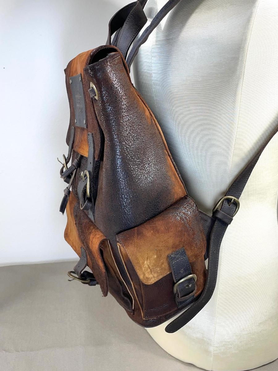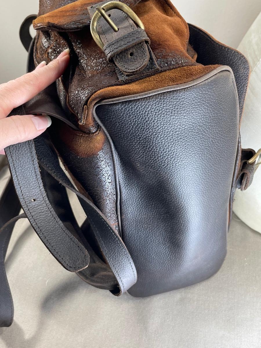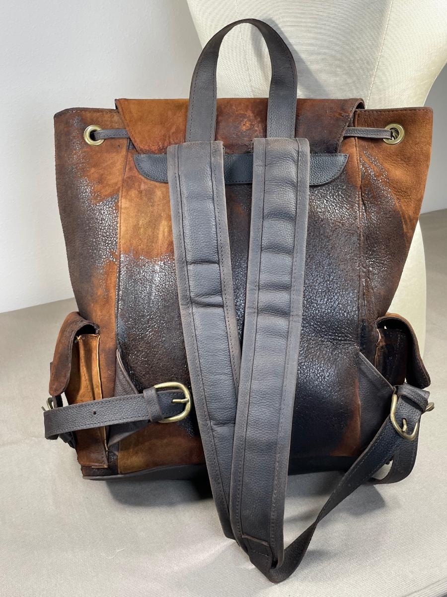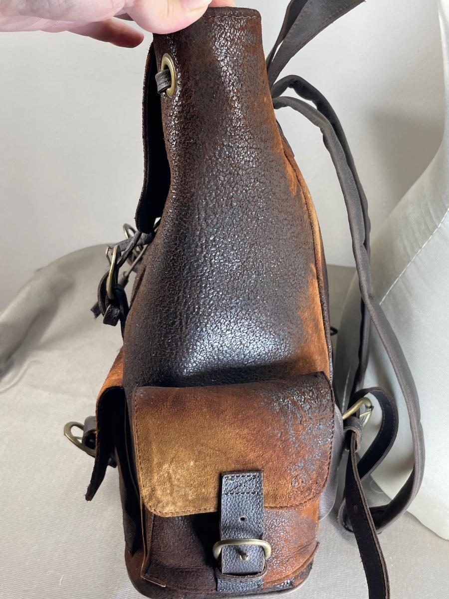 NWOT this rugged unisex backpack is extra large and heavy duty leather. Has multiple exterior pockets, padded straps and is made in Mexico. From Scheels. 15” wide by 18” high.
