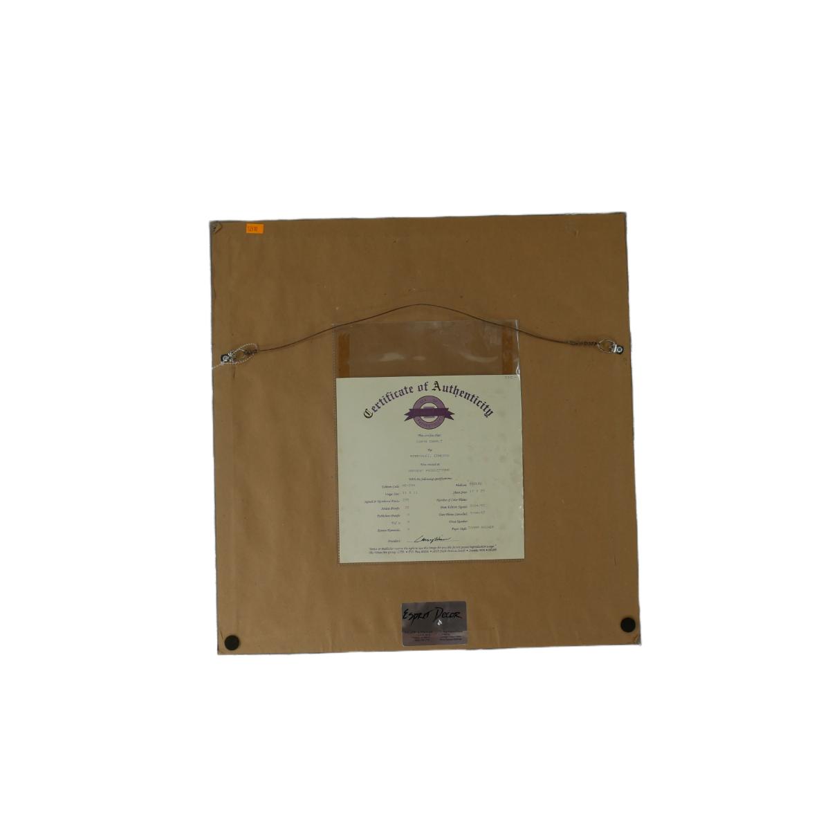"Corte Canale" by Ernesto Rodriguez limited edition giclee, numbered 234/275. Signed in pencil by artist. Dated 1997. Certificate of authenticity is included. Art measures L 11" x H 11". Frame measures L 19.5" H 20.25" x D 1". Weight is 5 lb 10 oz. (A53)