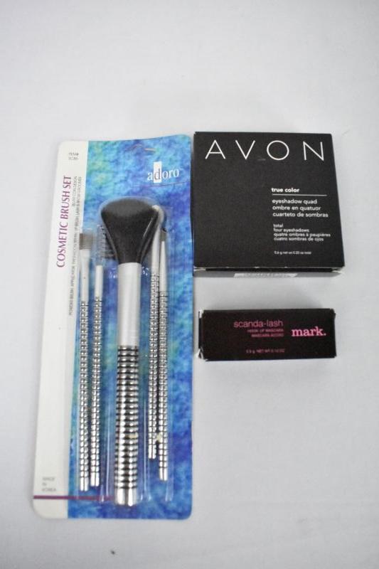 Cosmetic Brush Set, Avon Eyeshadow Quad Smoke & Mirrors, Hook Up Mascara - New