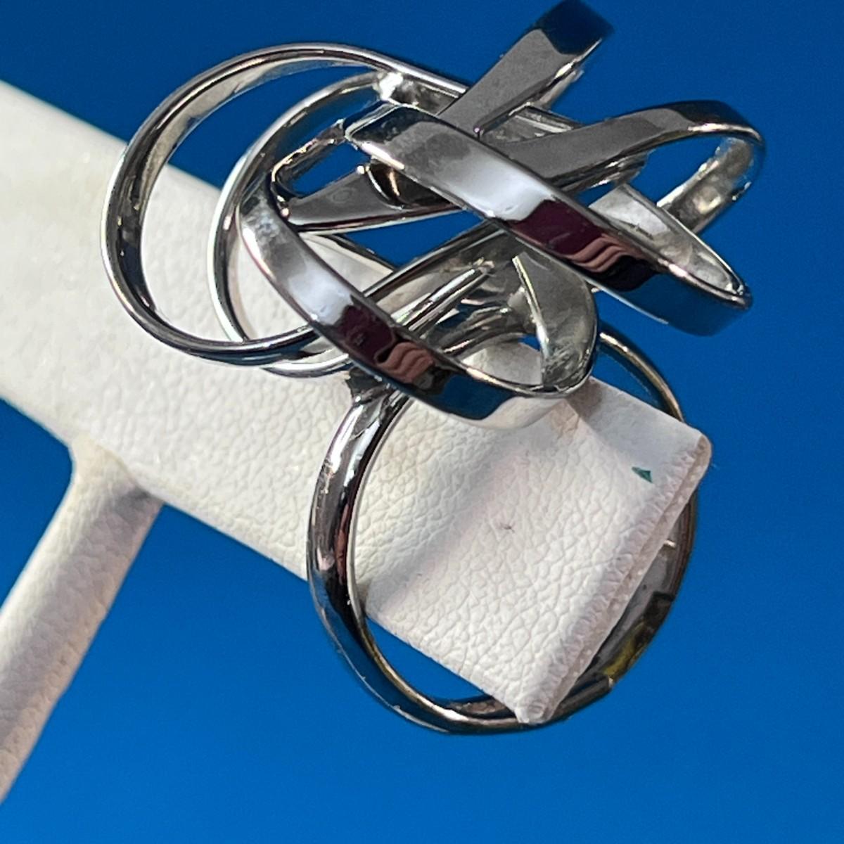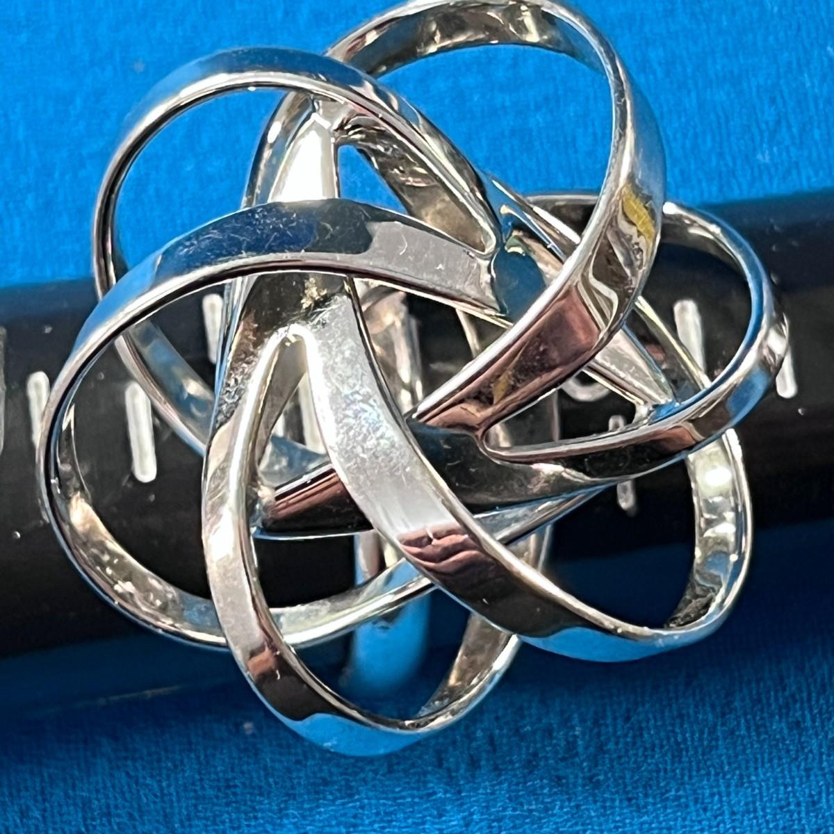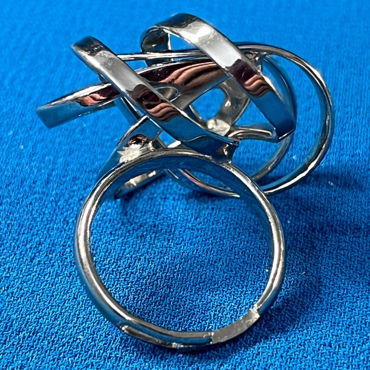 COSMIC SWIRL RING EXPANDABLE BAND SHINY SILVERTONE METAL FAR OUT!