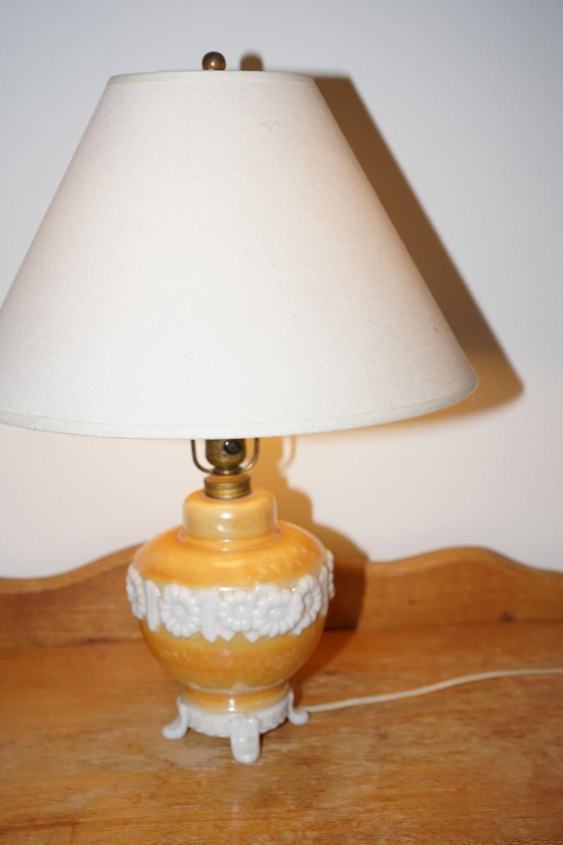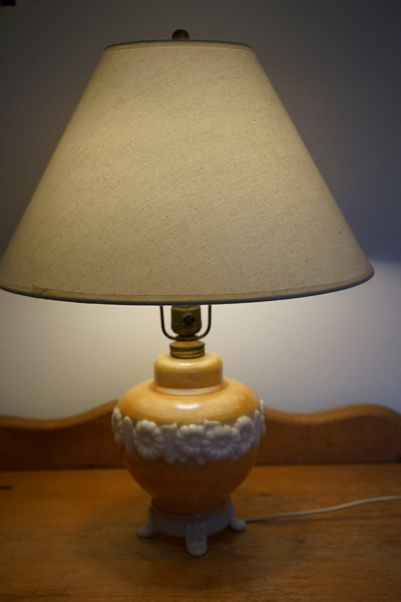COSMOS GLASS TABLE LAMP IN YELLOW /GOLD TONE WITH WHITE FLOWERS