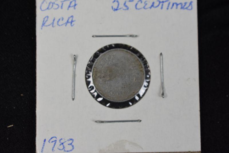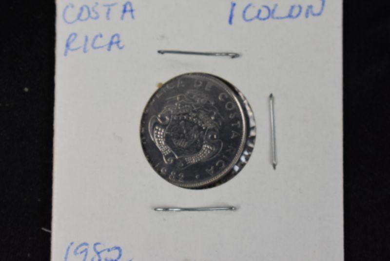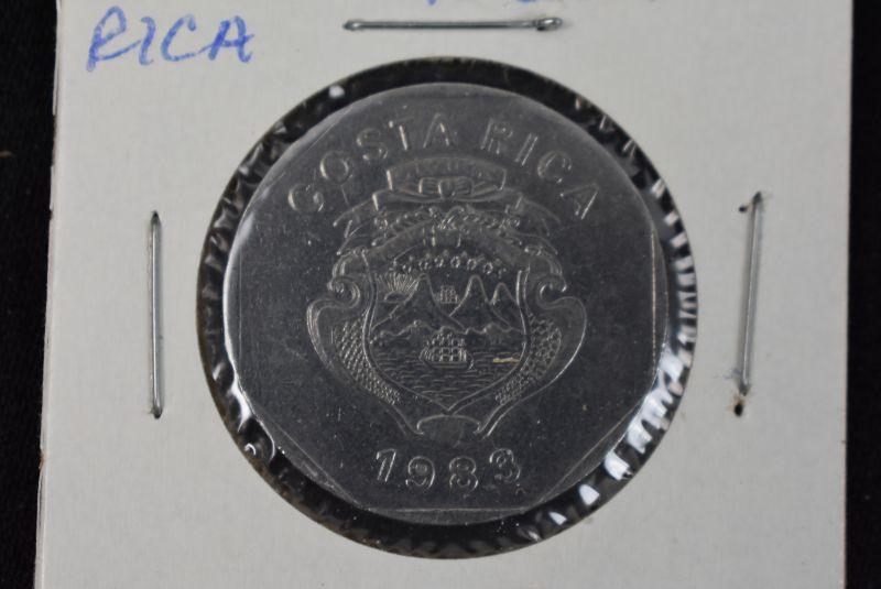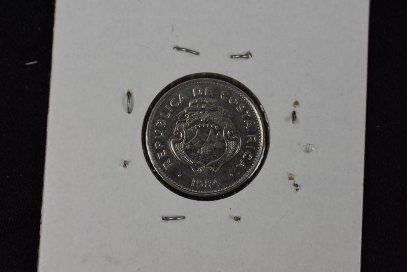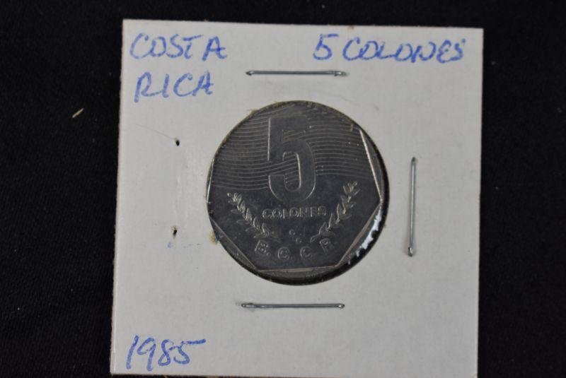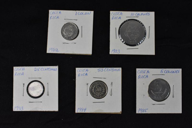 1982 Costa Rica 1 Colon, 1983 Costa Rica 10 Colones, 1983 Costa Rica 25 Centimos, 1984 Costa Rica 50 Centimos, and 1985 Costa Rica 5 Colones