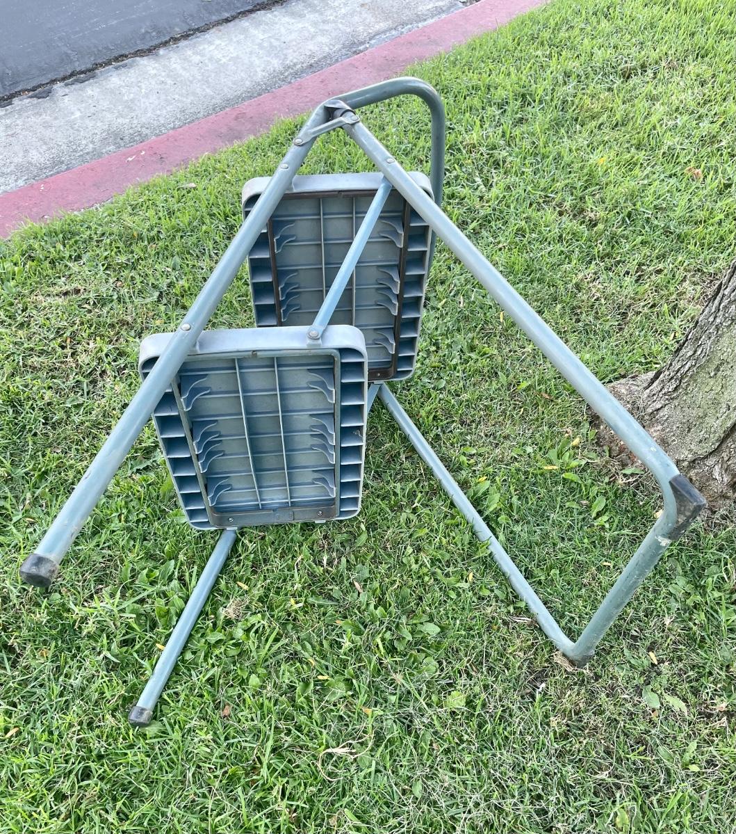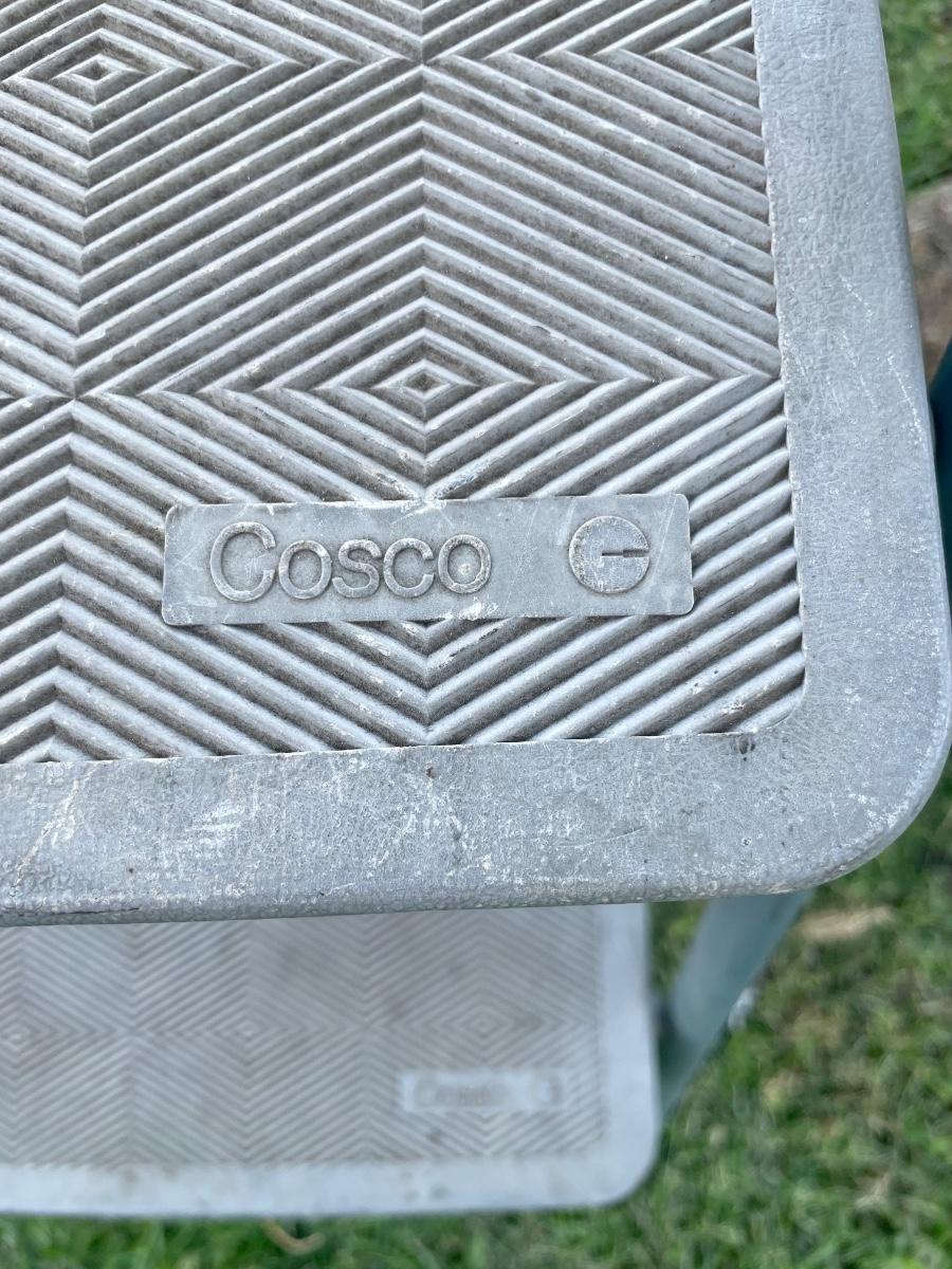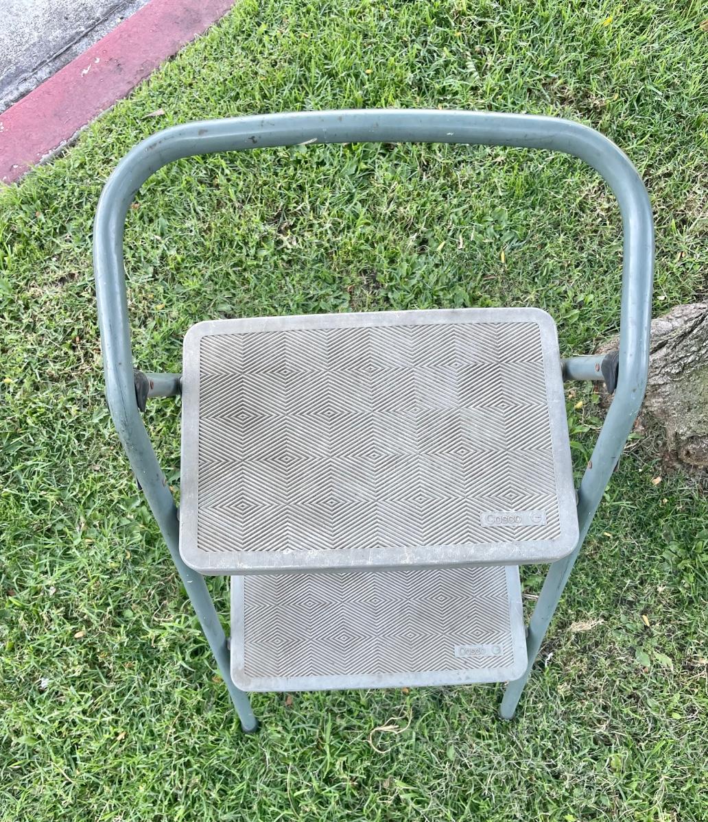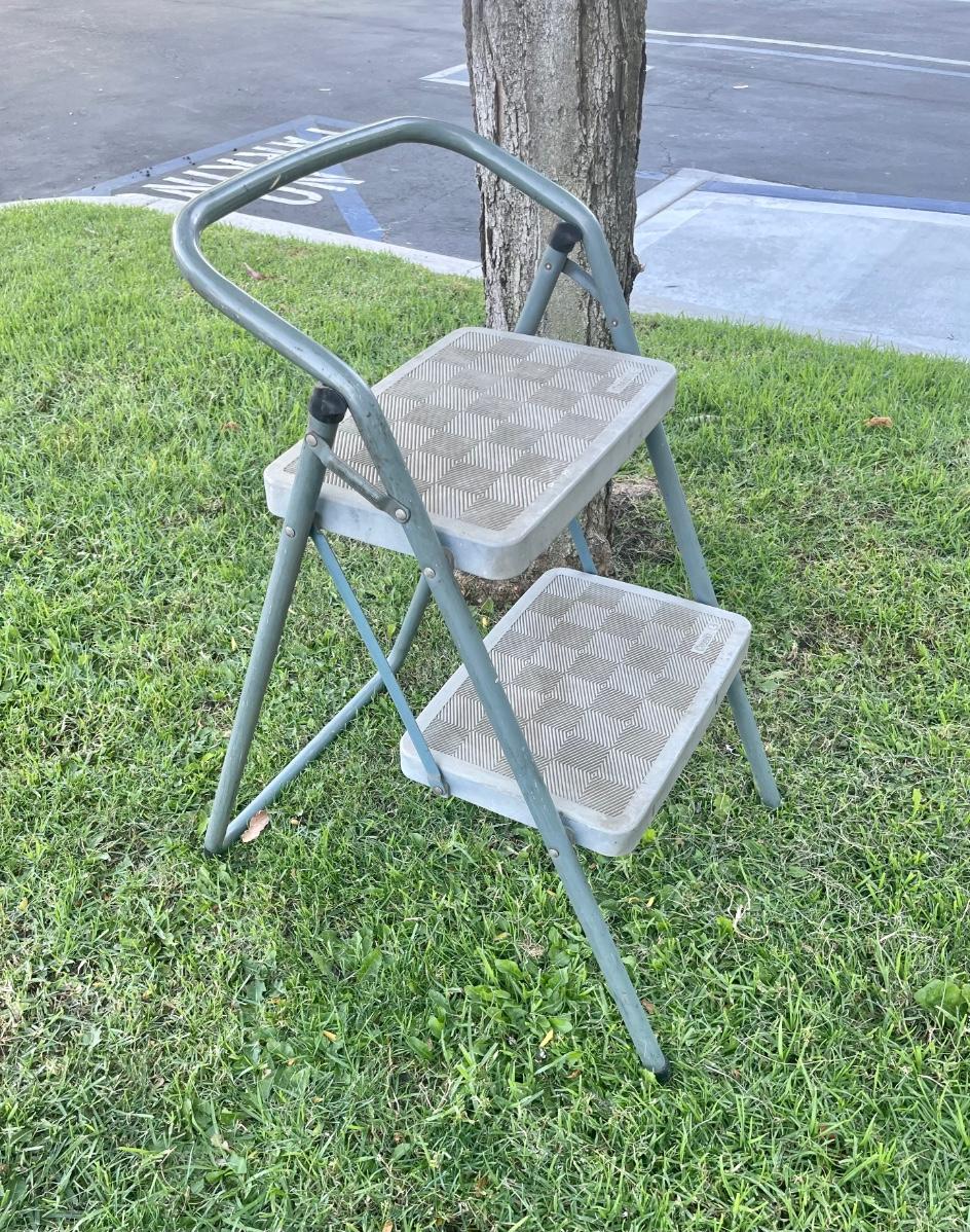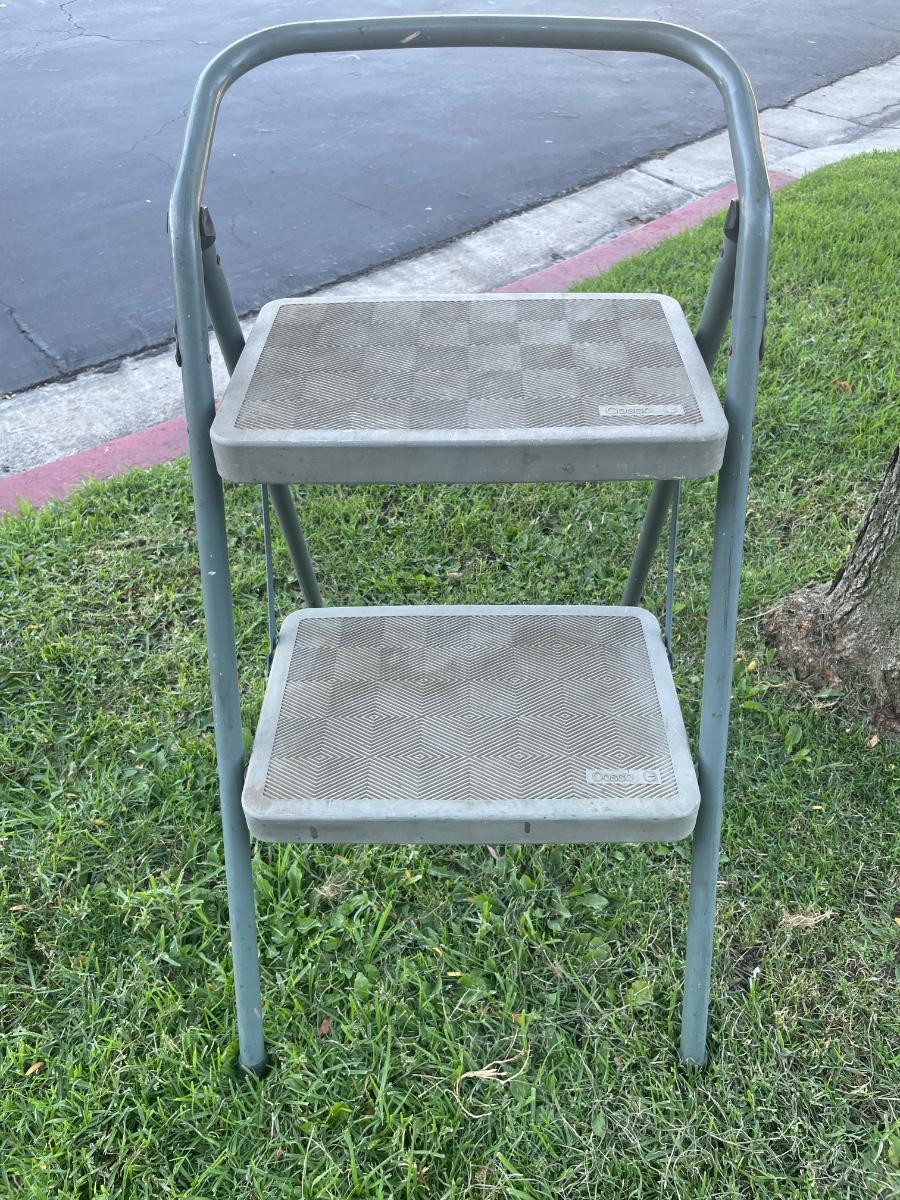 Folding, 2-step kitchen or pantry stool or stepladder. Approx 30” tall when opened.