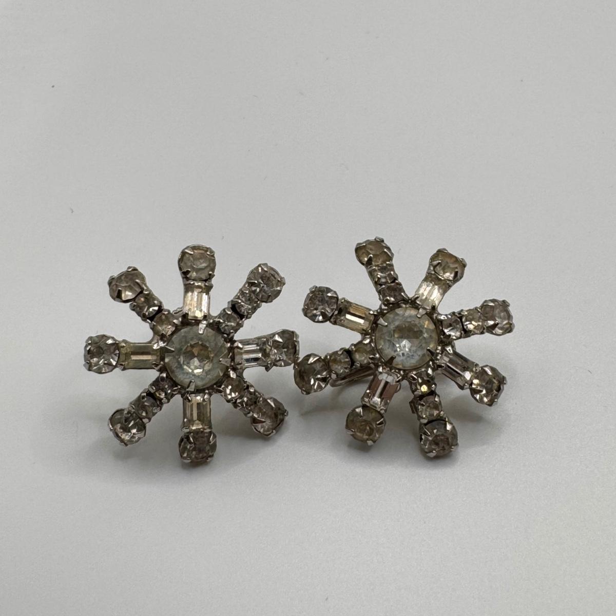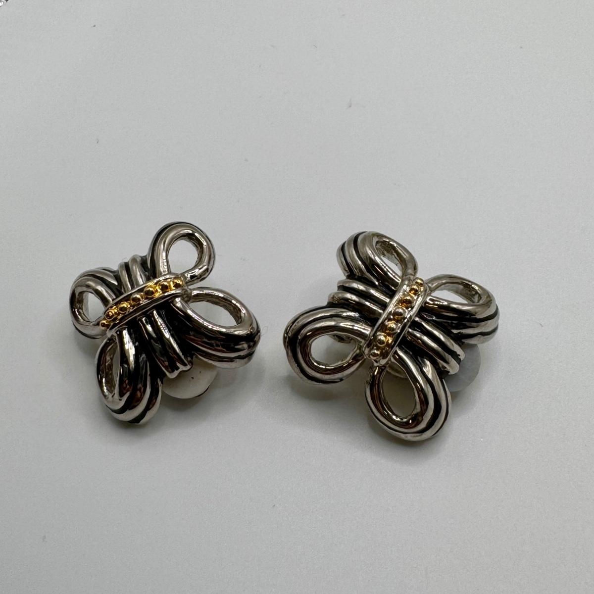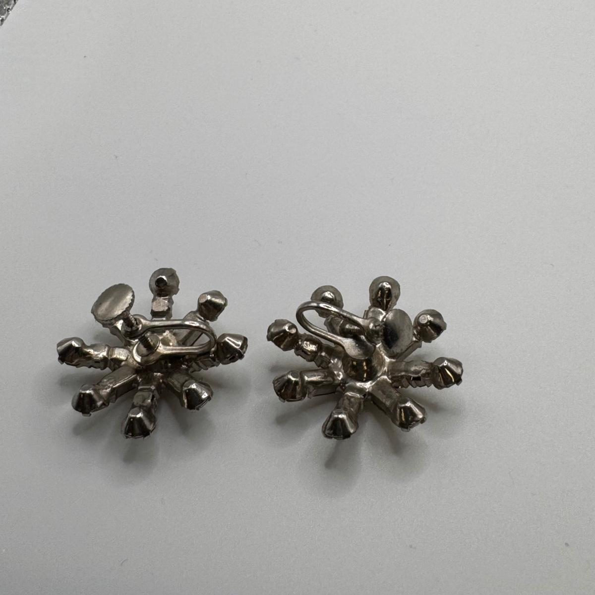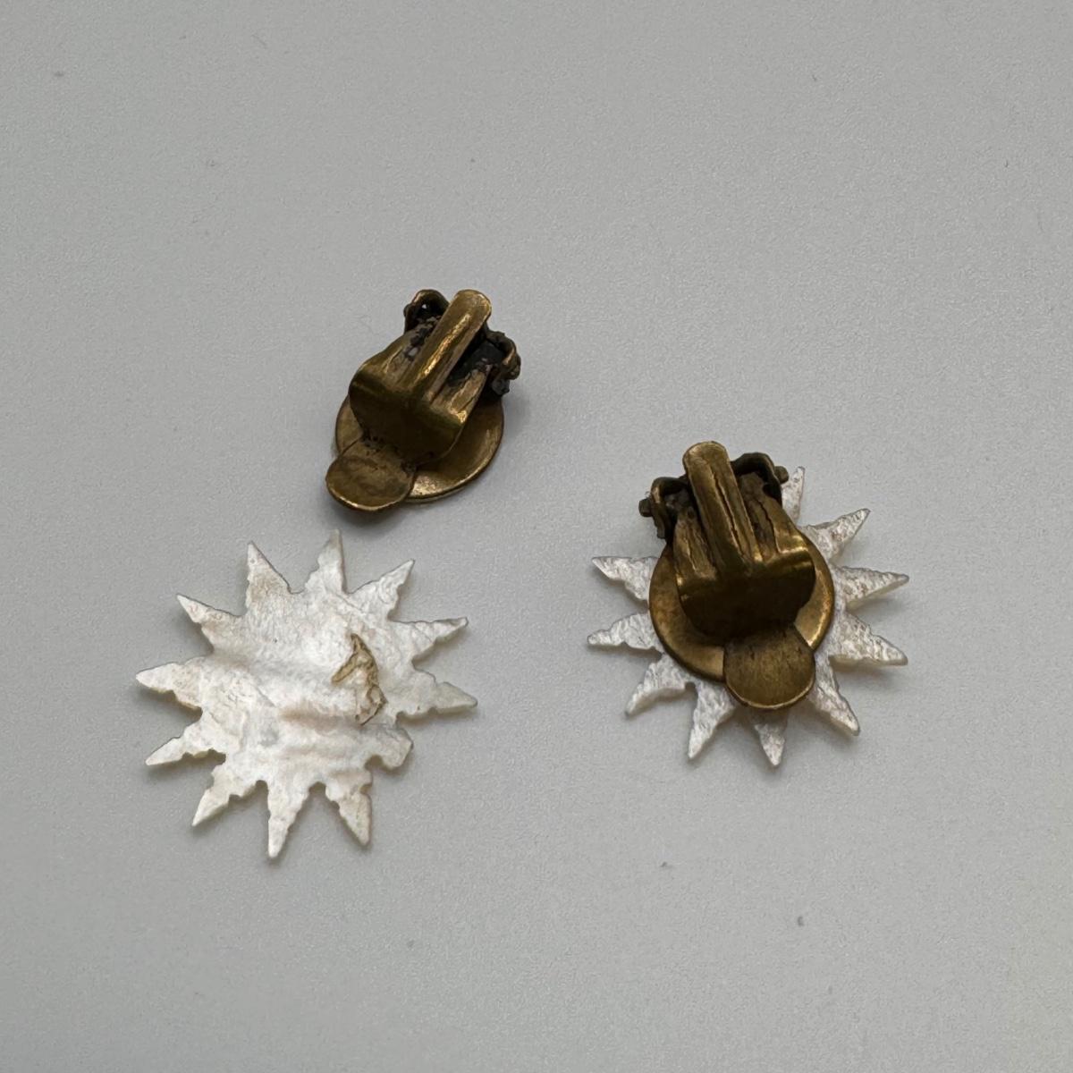 This lot includes thirteen clip-on earrings, one pair of pierced earrings, and a 4-pack of clip-on converters. One pair of earrings had its back fall off, but seems it can be easily repaired with glue - see picture included. All but one pair appears to be unmarked, the one marked pair is shown in photos.
