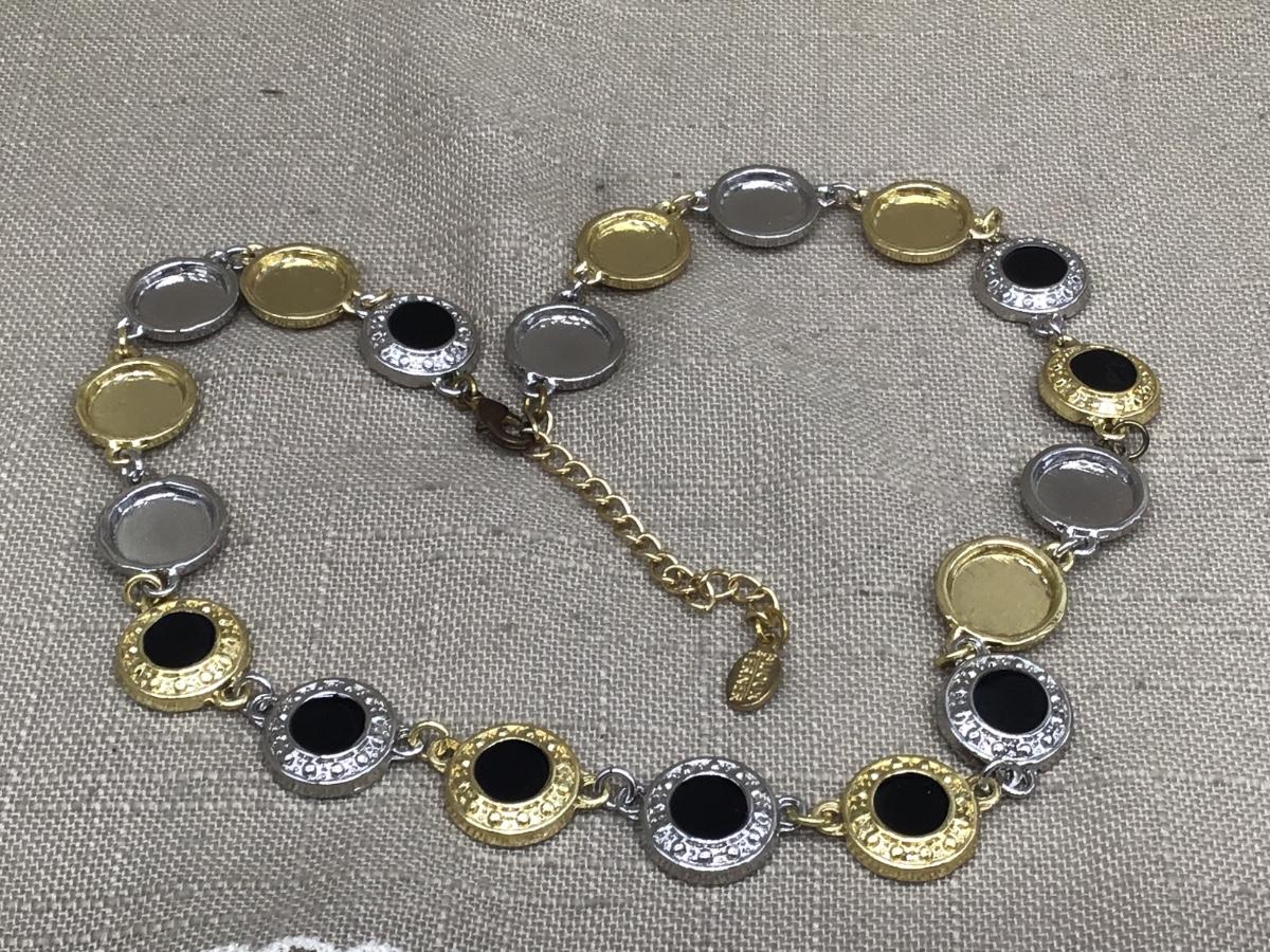 Costume Fashion Necklace Gold tone, Silvertone Faux Onyx